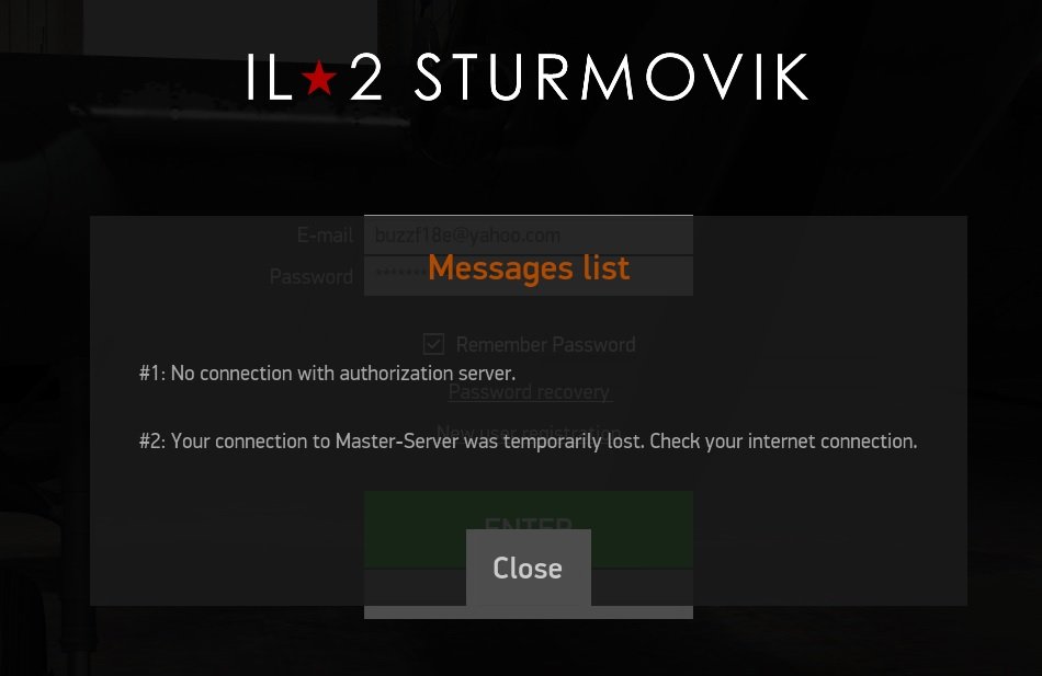 GSP_Hund Posted September 30, 2019 Posted September 30, 2019 Anyone else having startup problems after the update? Mine downloaded and installed fine but when I click enter at the login it says "#1: No connection with authorization server & #2 Your connection to the Master-Server was temporarily lost. Check you internet connection." So I try offline and I get "#10005: Please update your game: new version available." Restarted computer, not help; so I went and deleted the files in the update folder and restarted machine, came back and it begins installing a 278mb update?!? Ok, I restart machine attempt game play and still get the connection and update error. I'm at a loss what to do next . . . . .