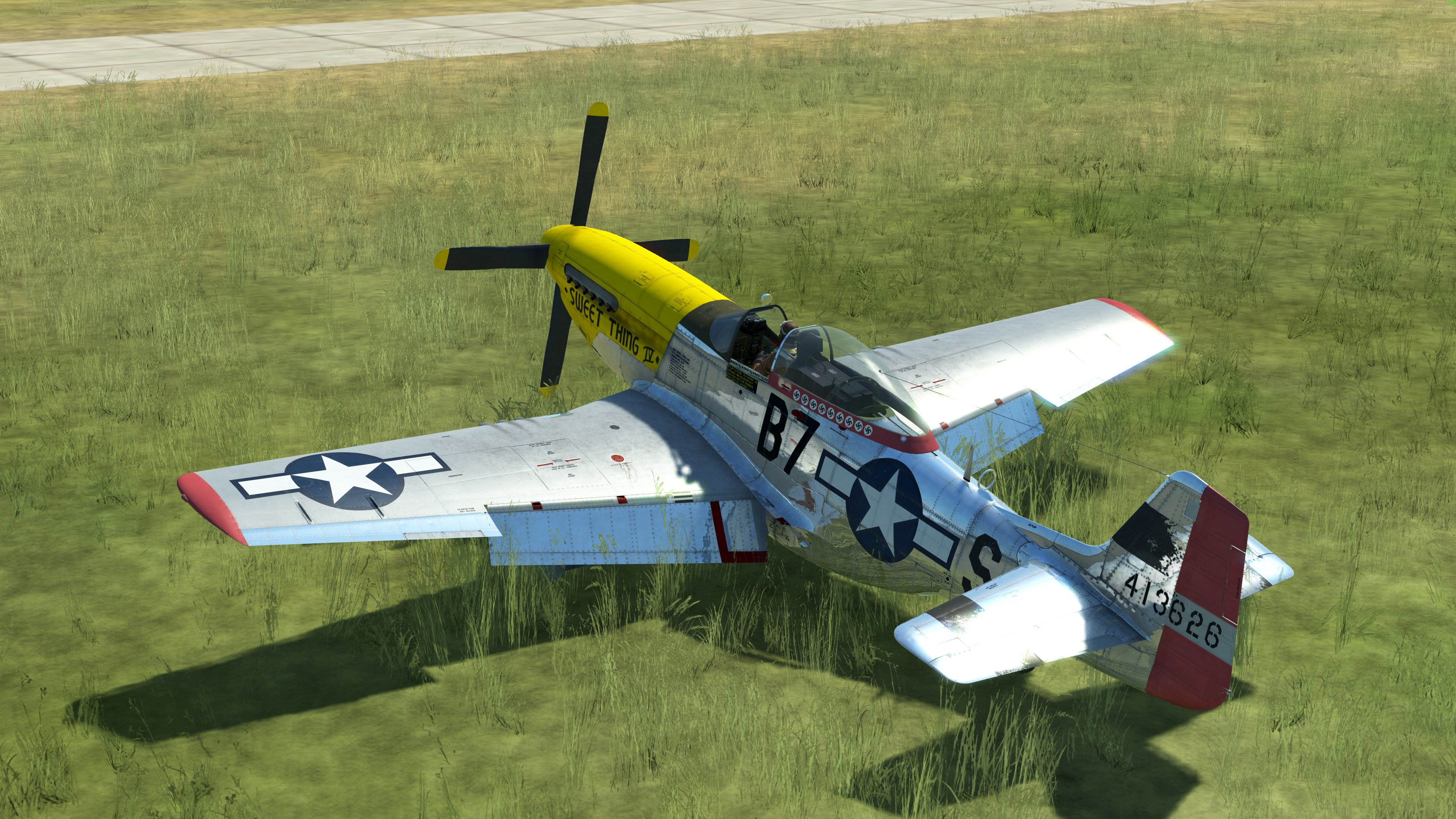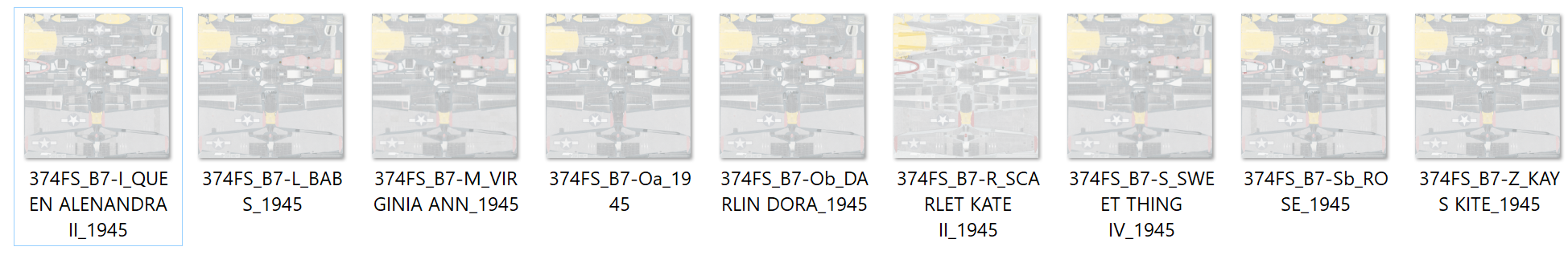 SOLIDKREATE Posted October 11, 2019 Posted October 11, 2019 (edited) Hello all here are the historical skins for the 374th Fighter Squadron. I was able to get 9 of them done today. These aren't easy because they are all just a bit different from one and other. I hope you enjoy using them online and in your missions. Any skin with a 'b' after the code letter denotes the 'Reserve A/C'. Please enjoy this pack! EXTRA THANKS TO BLACKHELLHOUND1 for the use of his colors. I want to have our aircraft look the same if they are seen next to each other. He has already made two of the four 'Bottisham Four' aircraft! @BlackHellHound1 374th FS, B7-S, Ser: 44-13626 361st FG, 8th Air Force "The Mighty Eighth" Flow by: Lt.Col. Roy A Webb Jr. "Sweet Thing IV" (1945) (click image for full detail) DOWNLOAD PACK 1 HERE: https://drive.google.com/file/d/1ftN5bwF--m-wAZlgf1RjPBLy7ZPRx9Zq/view?usp=sharing updated 11/24/2019, 11:11pm, PST -8GMT Edited November 25, 2019 by SOLIDKREATE 20 1 3