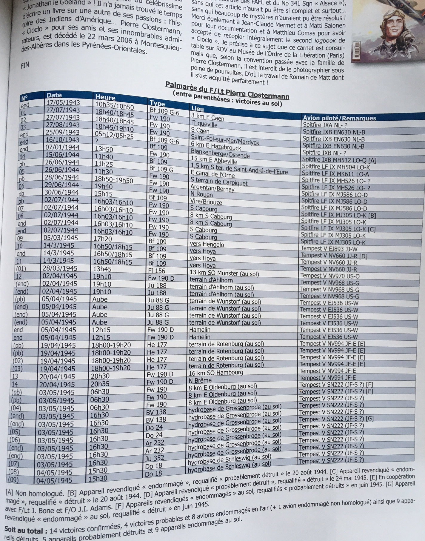 ZachariasX Posted November 13, 2020 Posted November 13, 2020 1 hour ago, MarcoPegase44 said: https://www.amazon.fr/Pierre-CLOSTERMANN-Journal-opérationnelle-Janvier/dp/1656024578 As it was the rule in the RAF and especially with the lack of aircraft, the pilots did not have assigned aircraft. They had planes according to the availability for maintenance. Except the squadron and Wing leaderswo had a personal plane. Thanks a lot for the link. Can you give a short comment about the book by Coisine? Is it not redundant to the article in AVIONS?