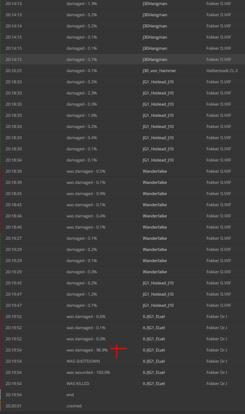 JGr2/J5_Klugermann Posted August 11, 2020 Posted August 11, 2020 S Konnecke. 9 hours ago, J5_Baeumer said: In other news, the following updates from over the front were read in Kaiser Commendations and Englander Despatches: US93_Larner is reported to be suffering the airmans equivalent to shell shock, the result of some close calls due to shoddy workmanship at the Spad factories. His streak of 114 live pilot scores in a single life remains the highest along the front, but perhaps not for long.... His nerve's gone, he's had enough. He should get that desk job his mother wants or offer to take out the trash. 1