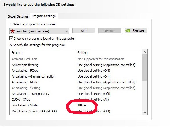 Hoss Posted October 18, 2019 Posted October 18, 2019 Delete startup.config, and go in and reset all your graphics settings. I'm not running AA or Vsync on nvidia settings, but running 4x AA and vsync in game only.. Have low latency set to On.. might try the Ultra though. Hoss 1