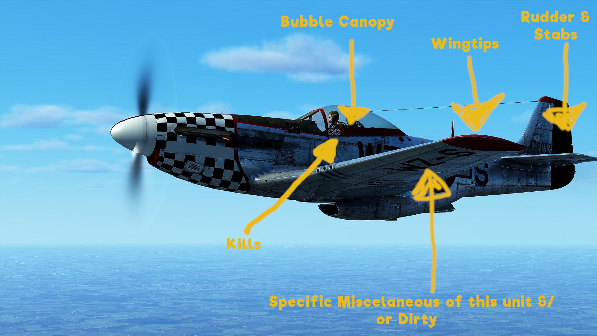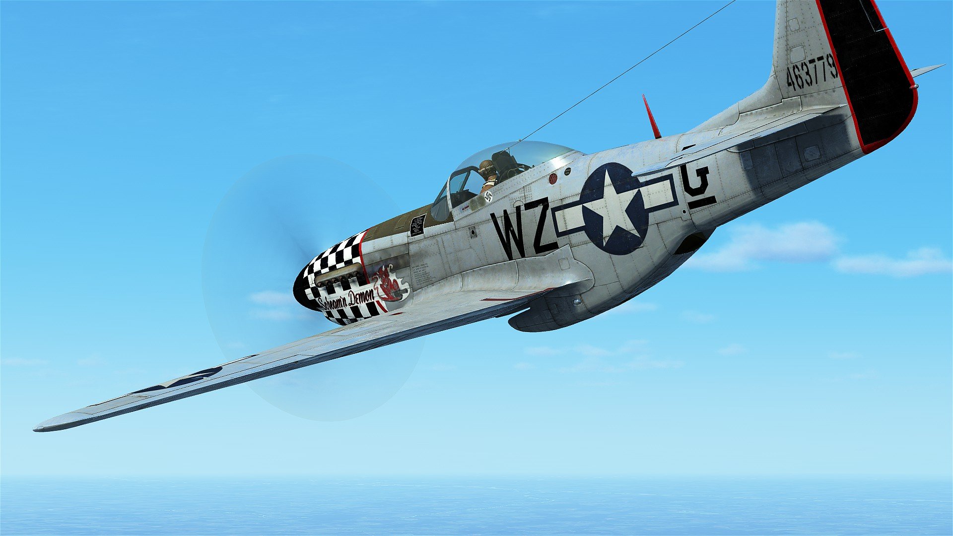 Tempus Posted July 21, 2020 Posted July 21, 2020 (edited) Here it goes!!!! Paint is still wet. 44-63779 P51D-20 78th. FG, 84th. FS flown by Lt. Alfred A.Garback. This unit was the replacement for its original "Screamin Demon". First 2 Svasts (kills) were blured due Garback got 2 previous half confirmed kills, so they blured the 2 halfs first painted and finally painted a whole one. I also added a few scratches over the svast*** and now is family friendly ;)))). I noticed in the picture that Antenna was not black (I expected it also black as the rudder color that you told me or bare metal. So the basic colors of the FG were white, black & red. I found 0 references for this unit so I've done a mix between the black rudder you've told me, the red antenna I think I could observe in the picture and a common design I've observed in other Group units: a black rudder and an outer red ribbon. I also included a few scratches (only seen a few big ones) in the WZ and a squared piece of metal for covering the cockpit lateral hole ( not sure but I think it were used for firing flares, but maybe someone could confirm this). I hope you enjoy this skin. I've tried to be as accurate as I can and if someone of the community give any further information or any unnaccuracy I will be pleased to modify this skin for a new one. I also tested in combat and it works pretty fine, Painted Demon missed a bit the Incendiary part in the API-APIT 0.50 rounds, but it's so light you can perform smooth 2 point landings ;)). Edited September 29, 2020 by Tatata_Time No freedom expression NO CONTENT SHARING 4 1