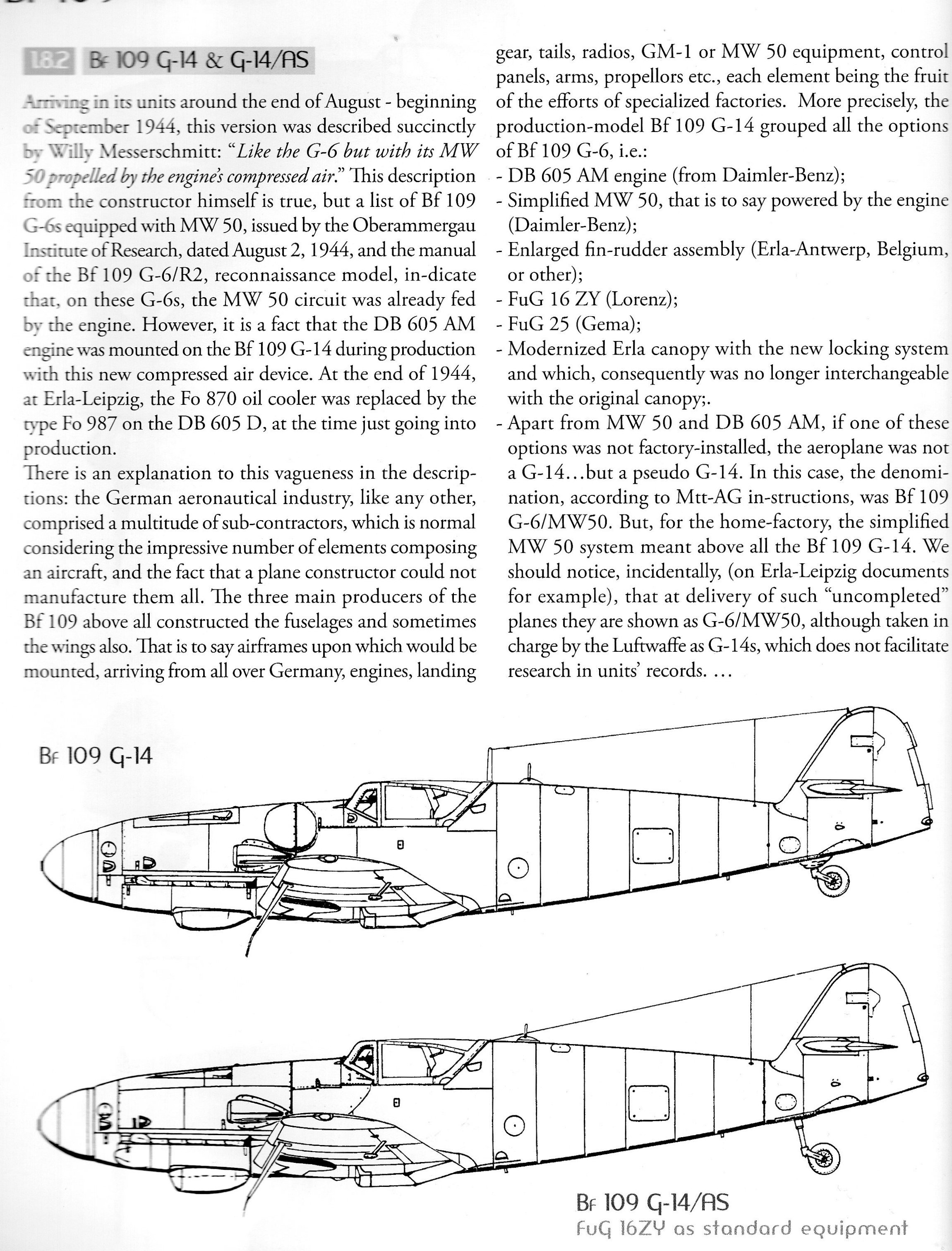 NZTyphoon Posted November 11, 2019 Posted November 11, 2019 (edited) 13 hours ago, MiloMorai said: You have seen the label? The report is quoted in full here *; note that there's no mention of "G-14" being stamped on the manufacturer's plate. Also note that there was no FuG 25 fitted, meaning that W. Nr. 413601 was a hybrid (quoting Jean-Claude Mermet...) Quote Apart from MW50 and DB 605 AM, if one of these options was not factory installed, the aeroplane was not a G-14....the denomination, according to Mtt-AG instructions, was Bf 109G-6/MW50. But, for the factory, the simplified MW 50 system meant above all the Bf 109G-14. We should notice, incidentally, (on Erla-Leipzig documents for example) that at delivery of such "uncompleted" planes they are shown as G-6/MW50, although taken in charge by the Luftwaffe as G-14s, which does not facilitate research in units' records... The British also had an intact, flyable Bf 109G-6/U2, W. Nr 412951 'White 16' of 1./JG 301 that had landed at Manston in the early hours of 21 July 1944, so they were able to note the differences between the two. * Interestingly, the report stated that, apart from the bullet resistant windscreen, " No other armour is fitted to this aircraft" and there was nothing protecting the fuel tank, apart from a plywood box. Edited November 11, 2019 by NZTyphoon Removing unintended emoji
