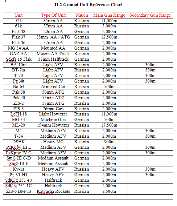 istari6 Posted November 5, 2019 Author Posted November 5, 2019 14 hours ago, CrazyDuck said: All technical debates aside, you should always consider the drag'n'bag tactics for dealing with any kind of AAA. In simple words: First plane enters the AAA range, but does not proceed towards the AAA - instead it only plays bait and draws the fire at long distance (flying perpendicularly to AAA with unpredictable changes in pitch - this minimizes the chances of AAA hitting you to negligible levels). During that time your wingmen swoop in from the opposite direction and mop the floor with them. Even if the AAA tries to re-train guns on them, they will usually not succeed if your wingmen come in fast and from opposite direction. Yup! I didn't know the term for this tactic, but we've already been using something similar, trying to attack from opposite sides. Whoever the AAA fires at breaks off while the other aircraft presses home the attack. 14 hours ago, Yogiflight said: 2000m for the MG 34 is by far too high. The mounted ground version (sMG) might have had a max range of around 1000m (1200m? like the MG 3 on tripod of the Bundeswehr), the AA version should be around 1000m opening fire and effective range the mentioned 700m. The 2000m maybe typo? Shooting on an aircraft at 2k is as effective as throwing the belt into the next river. Like @unreasonable pointed out, the different belting doesn't make any difference in range, more tracers is just for the gunner, so he can see better, where his shooting is, to change his aiming. The ammo for the MG 3 in the Bundeswehr was two rounds with tracers, three without. Makes quite some fun shooting at night and it makes aiming much easier. These numbers are helpful, but they also seem to assume level firing (e.g. a gunnery range). I imagine the range was less when firing up and also fighting gravity. Would imagine that 7.62mm wouldn't be effective much beyond 1000m (~3000ft) when firing upwards. On 11/3/2019 at 6:02 PM, busdriver said: Try this for a starting point. My apologies to the author, I have forgotten who posted this. Gotcha, these are the kinds of numbers I was seeking, thanks! So I have the following: Gaz-AAA - 2000m 61K (37mm) - 3000m 52K (85mm) - 11000m Also, were there any other major air defense weapons the Soviets used on the Eastern Front through the Battle of Kuban? I know the GAZ-AAA, 61K and 52K listed above. Are there any other weapons in game, or were there major weapons the Soviets used that haven't been modeled yet in IL-2? For background, I knew little about the Eastern Front air war until getting into IL-2 GB, so still coming up the learning curve here.