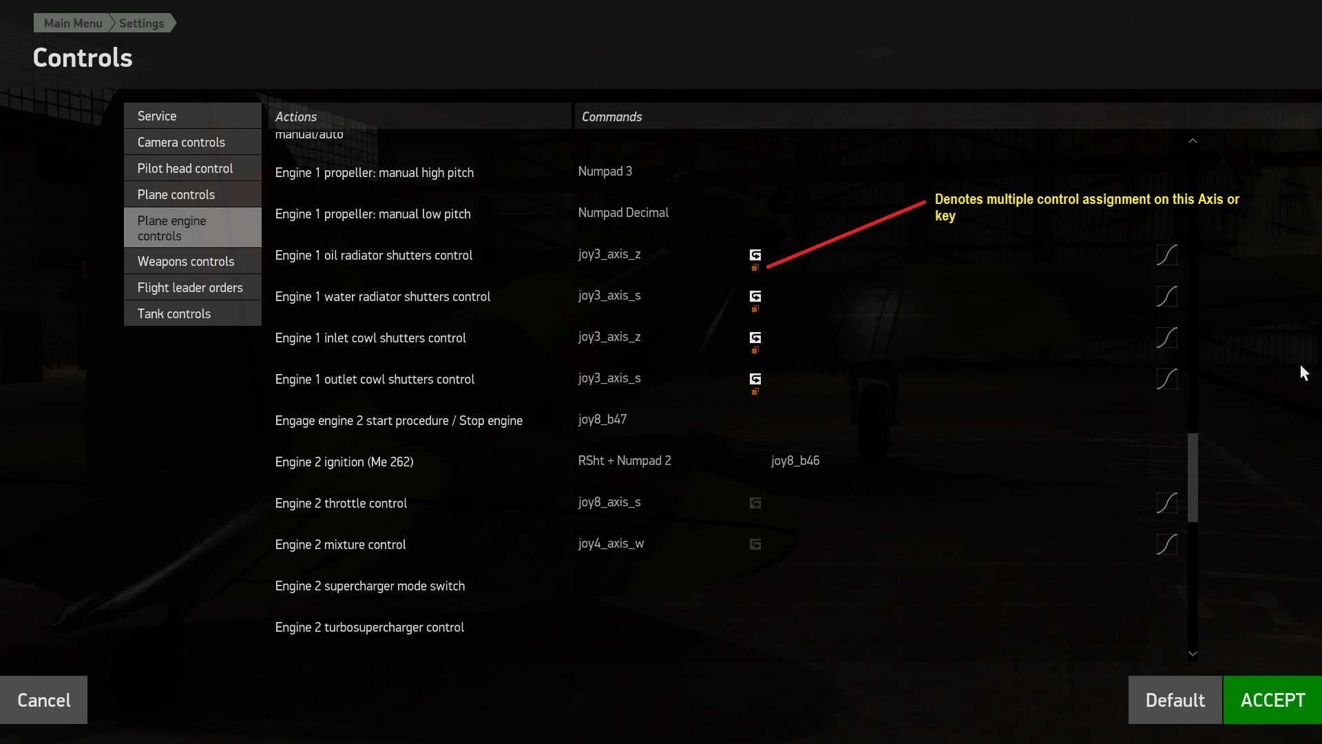 bzc3lk Posted December 20, 2019 Posted December 20, 2019 (edited) Look for this ( Orange Square ) in your control settings, for the possible multiple control assignments on the same axis or key. Edited December 20, 2019 by bzc3lk
