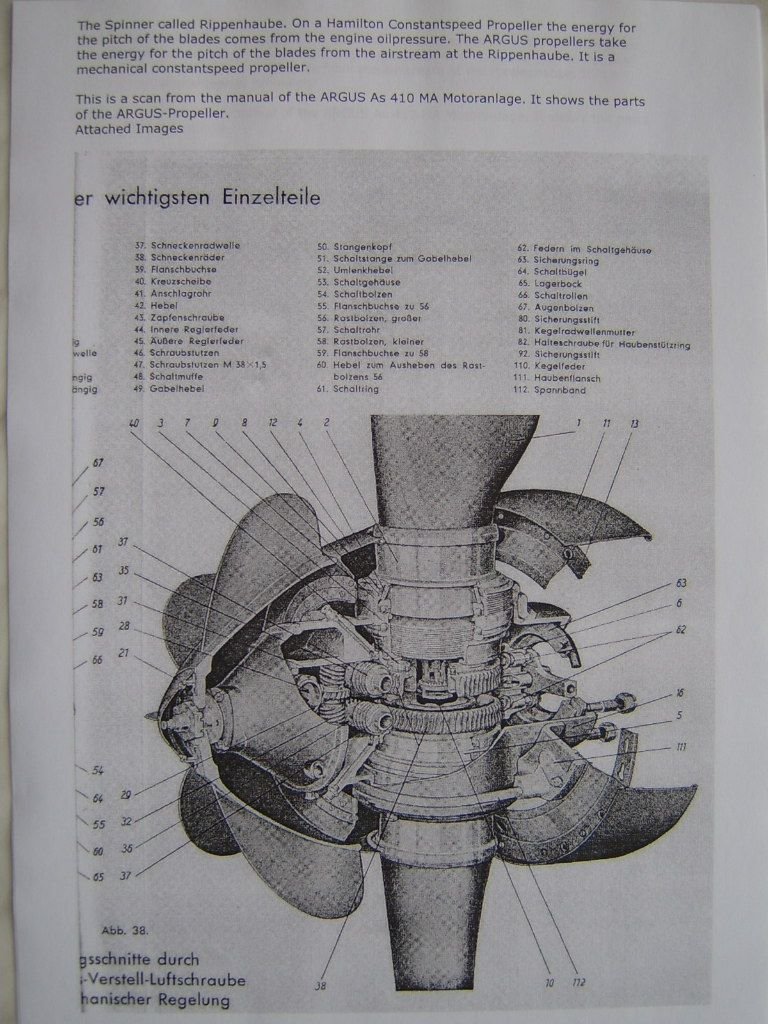 Raven109 Posted December 22, 2019 Posted December 22, 2019 (edited) @danielprates See https://ww2aircraft.net/forum/threads/fw-189-prop-spinner-question.36427/ The wind spins the spinner, this rotation is used to adjust the prop-pitch. Here's the full manual. Page 5 describes the function: https://www.deutscheluftwaffe.com/archiv/Dokumente/ABC/m/Motoren/Argus/Verstell Luftschrauben Anlage Argus/Verstell Luftschrauben Anlage Argus.pdf I'm always amazed at how many moving parts there are in an aircraft engine, considering all its supporting components. Edited December 22, 2019 by Raven109 1