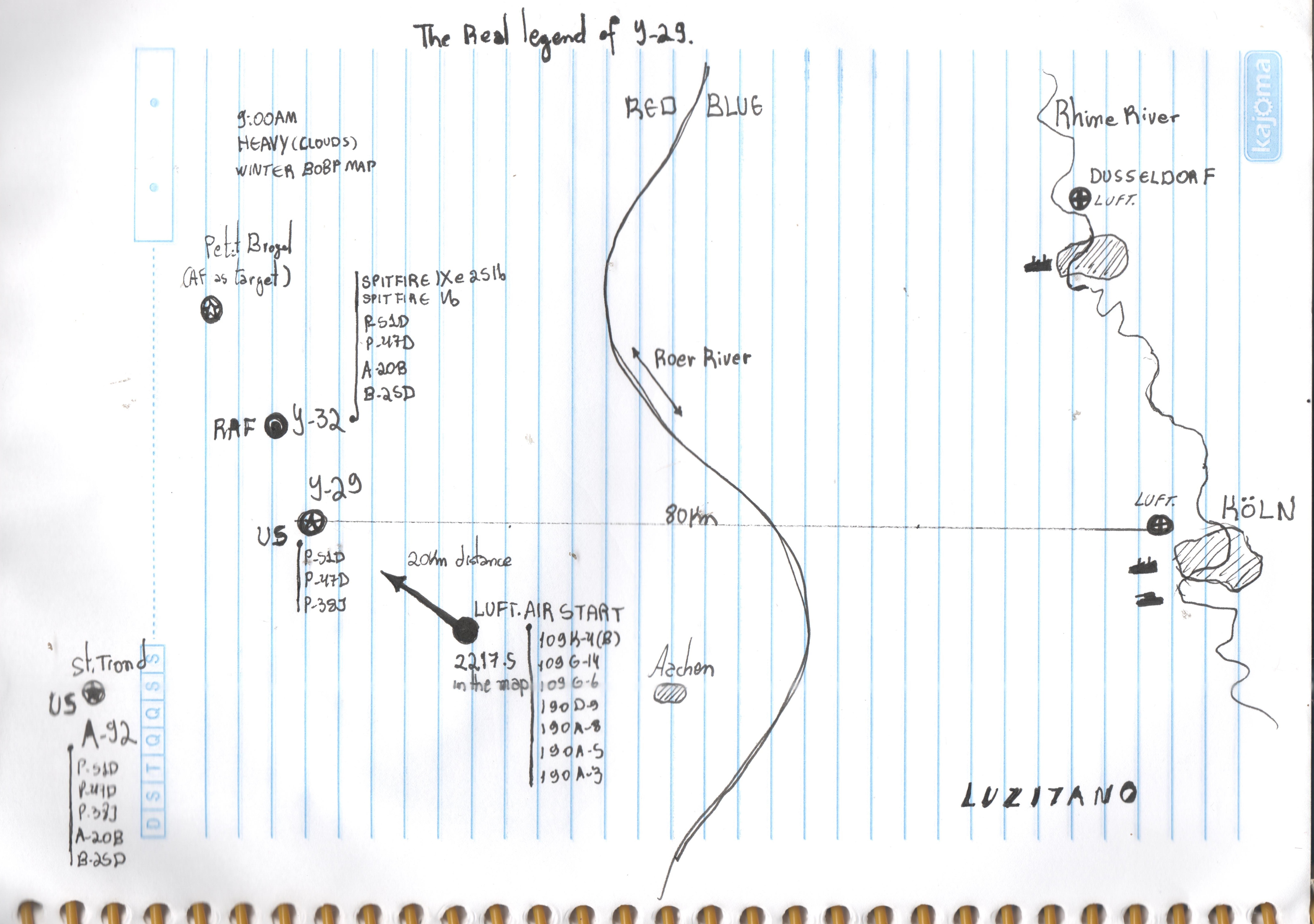 LUZITANO Posted January 4, 2020 Posted January 4, 2020 (edited) All the missions honoring Y-29 I've ever flown online have failed... The maps aren't bad, but the "way" the mission happens fails to recreate a P-51s scramble situation against a surprise Luftwaffe attack. I will tell how this happens and someone please tell me that I am wrong because this is what I see, people not starting at Y-29 base, the fighting happening at high altitudes, some times people flying at 10k and instead of the Germans attacking the US bases and for last is the Americans who attack the German bases... How this will work like Y-29 situation? Well it won't work because first I didn't see an online mission with people taking off from Y-29... For Y-29 to work, the mission would have to have "nasty" things and permissions, mainly because the servers have no intention of having this kind of feature 1º Y-29 would have to be an active base for players and at the same time an frontal airfield objective 2º To exist the surprise. Germans need airstart. And Aistart is not a feature appreciated by fully realistic servers, while it's the only way to create a situation like Y-29, a fight above that airfield. I always say that, "American players are paying to be shot in the back at this airfield", because you know... it's historic and fun... 3º Exception to the "do not shoot planes on the ground" rule. Only one exception and people would be contaminated with the habit of shooting planes on the ground, repeating this in other missions ... I'm sure and that's the problem with that exception So I did this drawing for a while now, but as it will "never pass" anywhere, I brought here for us to discuss The distance to this airstart would have to be calculated by testing. A sufficient distance for the Germans to reach Y-29 with time for some P-51 to take off.P-51 taking off from Y-29 with special gasoline because they are heros, and a "back base" in St. Trond if people want take off more safely. And finally, if the Y-29 and Y-32 aerodromes were destroyed, the Reds couldn't take off from them I would love to see this kind of mission, even if it was to be a weekend thing... Y-29 was a cool history, but not happened at 10k alt... Edited January 4, 2020 by LUZITANO 1