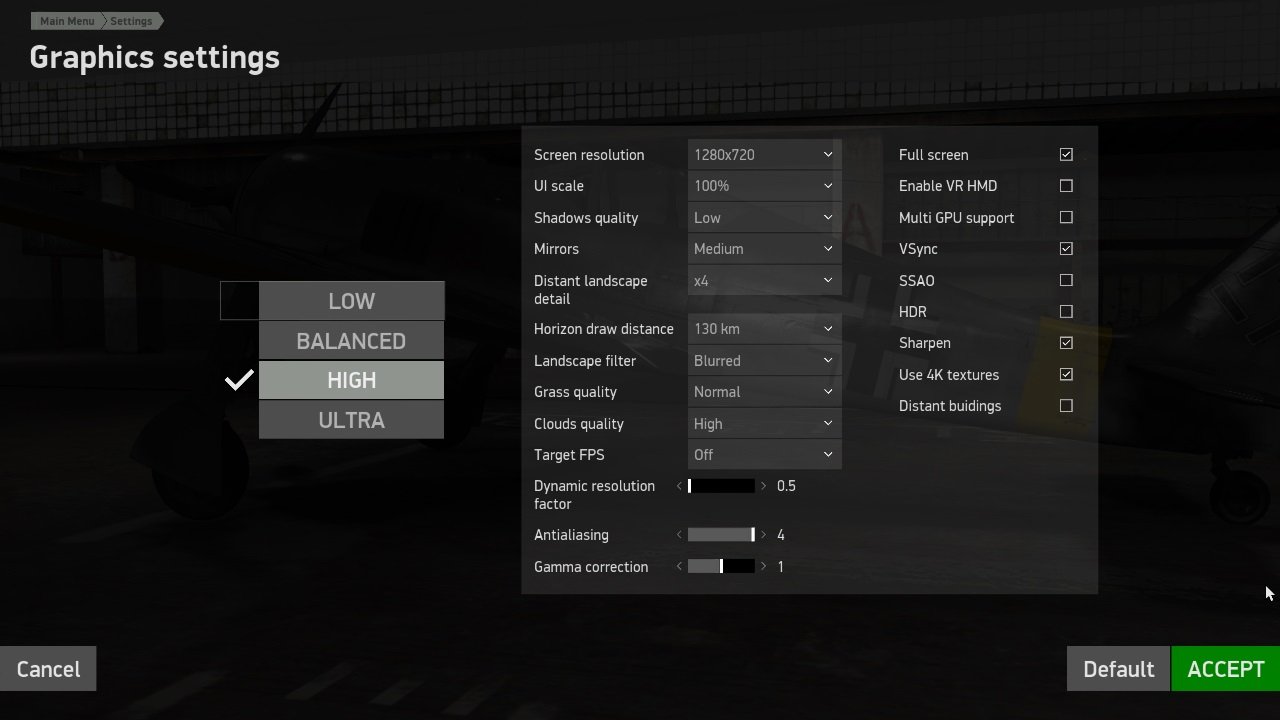 kraut1 Posted January 4, 2020 Posted January 4, 2020 (edited) Hi All, due to performance issues with 1929x1080 I spent some hours today to optimize my BOS for 1280x720 (same ration WxH as Full HD) for my Full HD Monitor. My System: Intel i5-4570 3.2 GHz GTX970 Ram 8GB here my current settings which seems to be quite good. still to be optimized: -the scratches on the cockpit glass screens updated: solved, use Scratchless Canopies by LizLemon (link see below, Thanks very much LizLemon)) -clouds near horizon -planes near clouds Best regards Edited January 4, 2020 by kraut1 one open item solved (scratches removed)