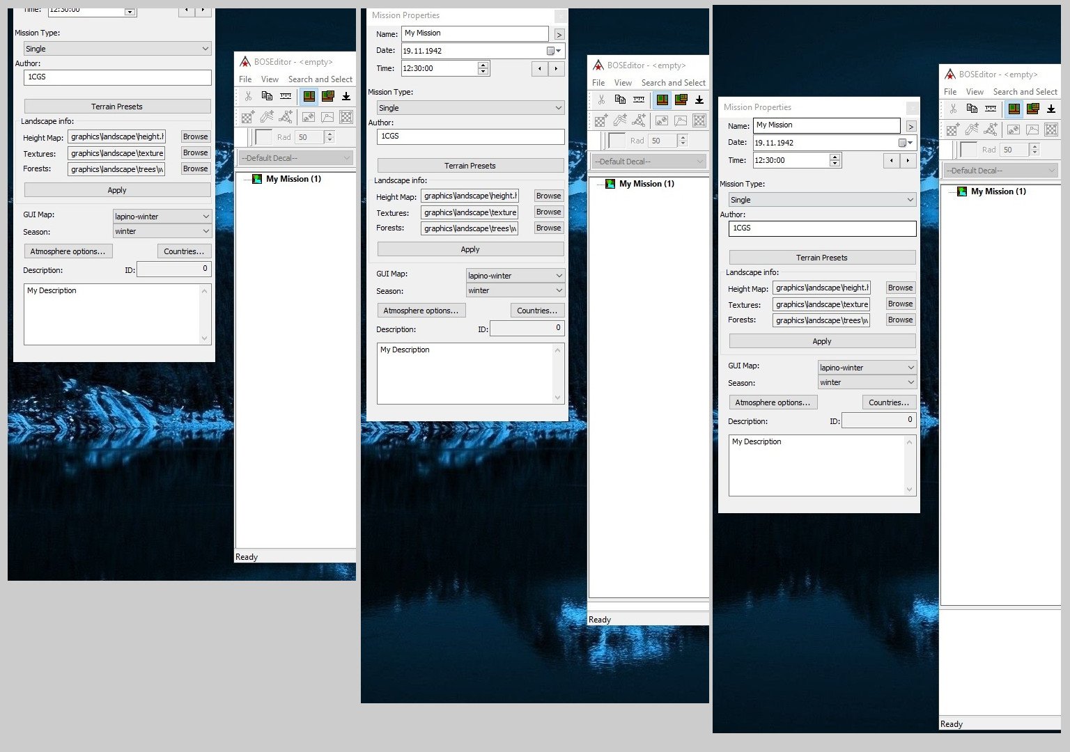 CorvusX Posted January 23, 2020 Posted January 23, 2020 (edited) On 1/22/2020 at 6:59 AM, Twizard said: I opened up the Mission Editor and the Property Dialogue box opens too high on my screen to work on. Hi, The property dialog seems to be related to the main editor window you can try to maximize the main window close it and open it again, then the property dialog sholud be in a usable position. If the main editor window is not maximized: It looks like it needs a minimum hight to get the property dialog in a usable position, if it's to small in hight the property dialog will move up out of the screen. (always close and open again after changing the hight of the editor window) or Click on any visible "inactive" gray area (not on a text-box or button) of the property dialog to "activate" it. Then press ALT+Space to open (a maybe also invisible) pull down-menue (including: move and close, move should be selected on default) press Enter and use the arrow keys to move the property window to a better position. Edited January 23, 2020 by CorvusX