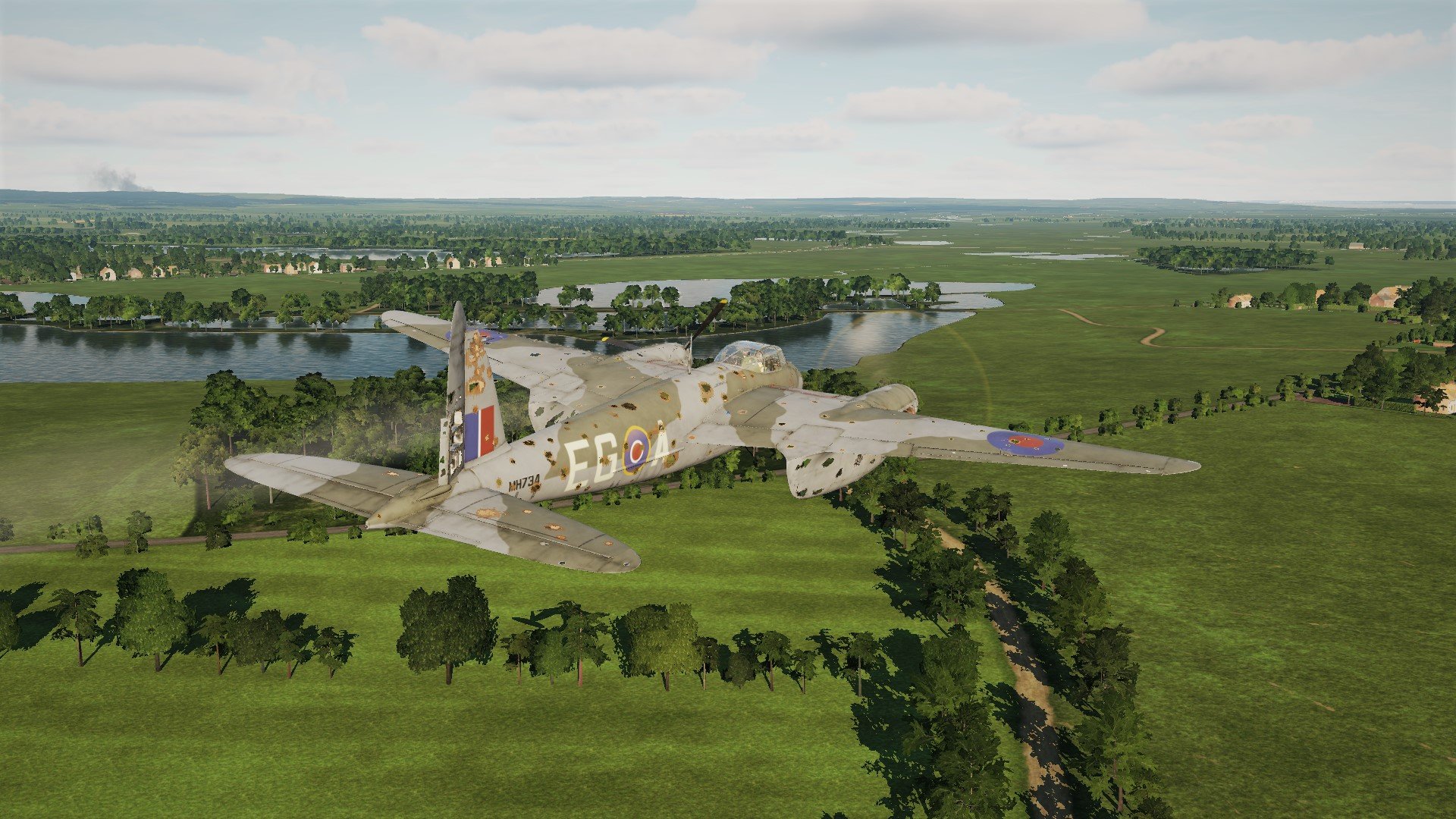 Bremspropeller Posted October 2, 2021 Posted October 2, 2021 Trying out the external tanks and all the gas I could carry. Of course I ran into a Dora over the channel.... Climbing out on the second try. This time without the tanks and less gas. I ran into the same guy above the frnech coast. He got me burning, I tried to turn around and shoot him in the face. Wasn't successful... On my third lap around the "I hate myself"-carousel, I managed to bomb St Omer, but the l@zerFlak got some pretty good hits into me. At this time, I probably have more single engine time in the Mossie than time with both motors up... I just managed to get across the channel. Yes, that's the amount of bank I needed to put up to balance the starboard engine at climb power with a fully deflected (and ripped) rudder. This is about my top of climb/ top of descent. Anticipating a damaged gear, I was a bit too eager to put down the dunlops. Ran out of airspeed and VMC-slipped into a field just short of the runway. Thankfully I survived. The Navigator was not impressed... 5 2 1
