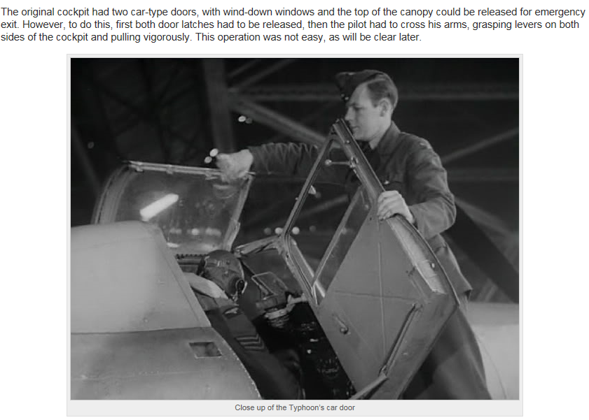 Blitzen Posted January 28, 2020 Author Posted January 28, 2020 (edited) Maybe they were influenced by the P-39?(The game does a great job in the bailout animation with the P-39. I suggest you try it at least once. ) After all it had much the similar arrangement.I wonder if the door(s) had some sort of locking mechanism or release when pushed fully open, even so pushing the door(s) open against high speed slipstream must have required considerable effort. It might explain the high number of fatalities in the early Typhoon ops when coupled with problems with tail failures in dives? In any case maybe we could have both? ( BTW : I am currently built the Airfix 1/32nd scale early “car door” Typhoon that has many many parts.Airfix makes both models car door & bubble , but to my eye the car door is just “cooler “ looking. “Beauty is in the eye of the beholder,” I guess. Edited January 28, 2020 by Blitzen added screenshot 1