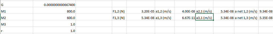 MikhaVT Posted February 3, 2020 Posted February 3, 2020 8 minutes ago, 71st_AH_Barnacles said: F=m*a so that's only true ('falling' faster) if you consider the earth is being attracted to the bullet. Since Newton's laws include "for every action their is an equal and opposite reaction" we do need to consider the earth being attracted to the bullet. Every time you jump, the earth must move down. 9 minutes ago, kendo said: You really never do know what you are going to come across on this forum. ? I'd like to thank you for distracting me from my really important work (not really...) for the last 20 minutes while i researched this.... Turns out the answer is down to inertial mass - the increased gravitational force experienced by the heavier object is balanced out exactly by the increased force needed to accelerate it due to its greater inertia. So they do fall at the same speed. Phew, Newton can rest in his grave.... Remember newton's laws. For every action there is an equal and opposite reaction. The acceleration that the earth applies on a 600kg object is the same as that which it applies on a 1kg object because of the mass of the object mathmatically canceling out the greater force; however, this somewhat ignores newton's first law since we are neglecting the acceleration of the earth caused by these objects falling. Below is a pair of calculations using an 800kg reference mass then comparing relative accelerations for a 600kg mass and a 1kg mass. We can see that the acceleration of mass 2 caused by mass 1 is exactly the same as the acceleration of mass 3 caused by mass 1; however, the acceleration of mass 1 caused by mass 2 is greater than the acceleration caused on mass 1 by mass 3. If we look at the net acceleration of mass 1 and mass 2 it is greater than the net accelerations of mass 1 and mass 3. This is a fairly pointless thing though, since in the experiments of dropping a feather and a bowling ball at the same time their pull on the earth means that the earth is accelerating towards them at the same rate so they do accelerate with the same net accelerations; however, if you drop one, then after it lands drop the other, they would be different. Also, the acceleration of the earth caused by these objects is absolutely negligible. ? please excuse the (m/s) instead of (m/s^2) i didnt type that in since it was a quick example.