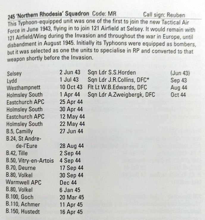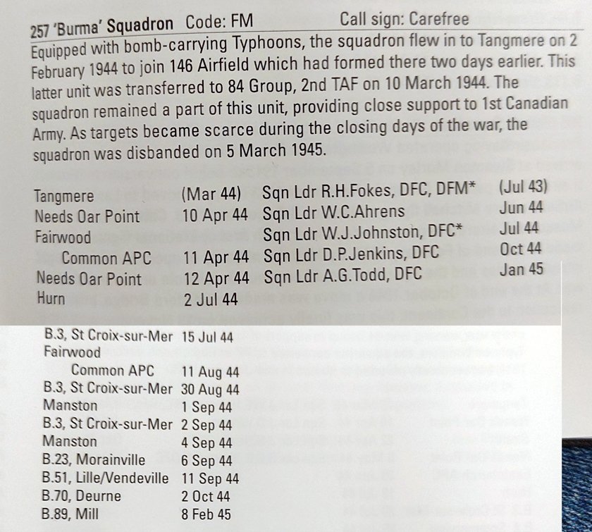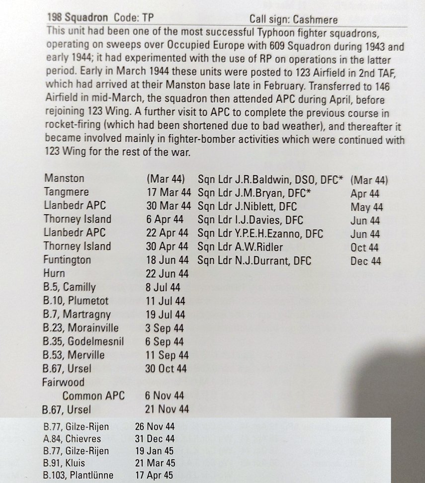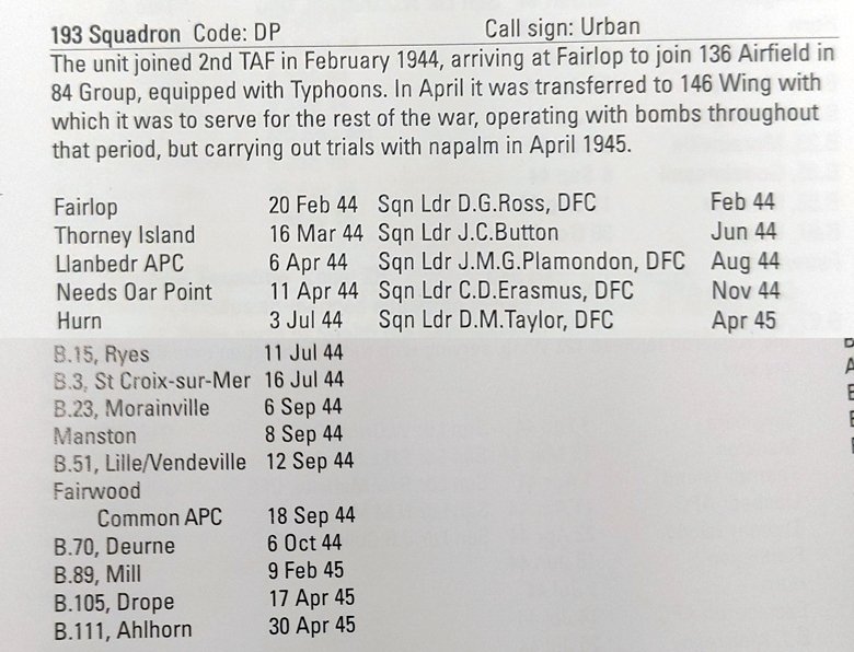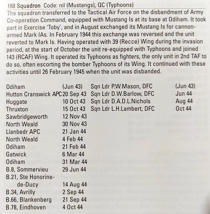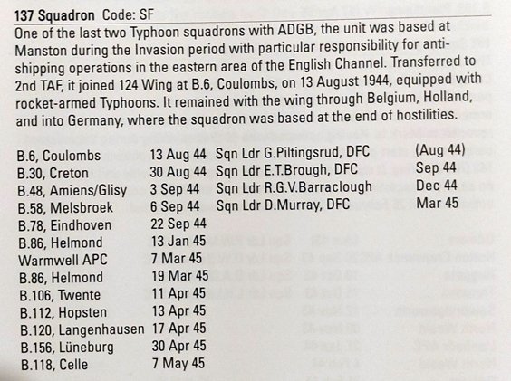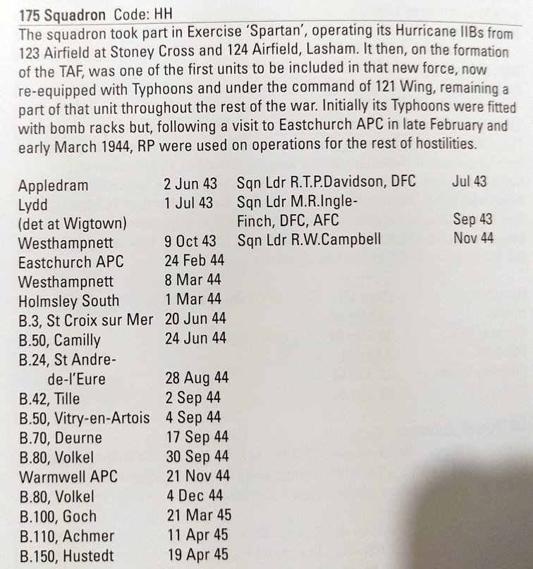HBPencil Posted February 6, 2020 Posted February 6, 2020 (edited) The following info is from vol 4 of the 2nd TAF by Shores and Thomas and so only covers the sqns in that TAF of course. I didn't include 486sqn as I guess their conversion away from the Tiffy in early '44 is a bit too early for your needs? These are just photos taken on my phone so some had to be cobbled together if the text was spread across two pages. Edited February 6, 2020 by HBPencil 1 1 6