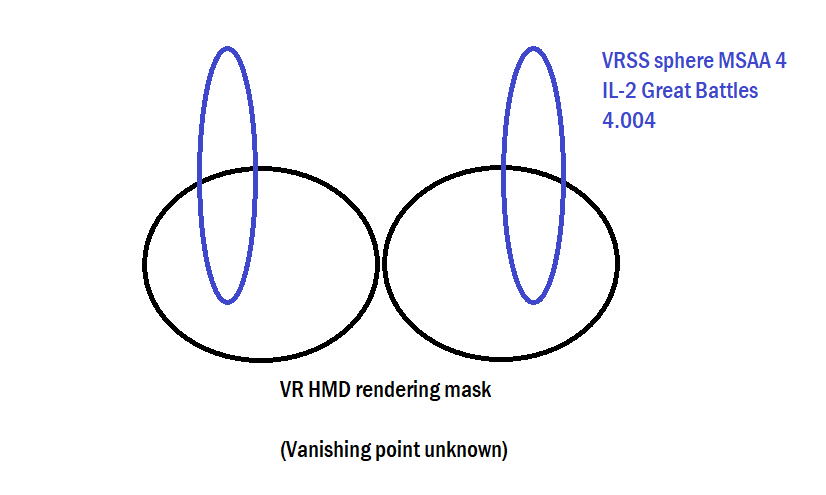 SCG_Fenris_Wolf Posted February 12, 2020 Posted February 12, 2020 Exactly, it does work, but the center is not in the center of your vision. Headsets with normal Field of View like Index or Rift S probably don't even get to see the VRSS sphere. The fact that I can even see it, is probably because of my large FOV Pimax headset. To draw the comparison with my awesome paint skillz: The black circles is Pimax FOV, the brown is Index FOV, the red Rhombi are the sweet spots. It's merely an approximation to demonstrate where the VRSS sphere is located.