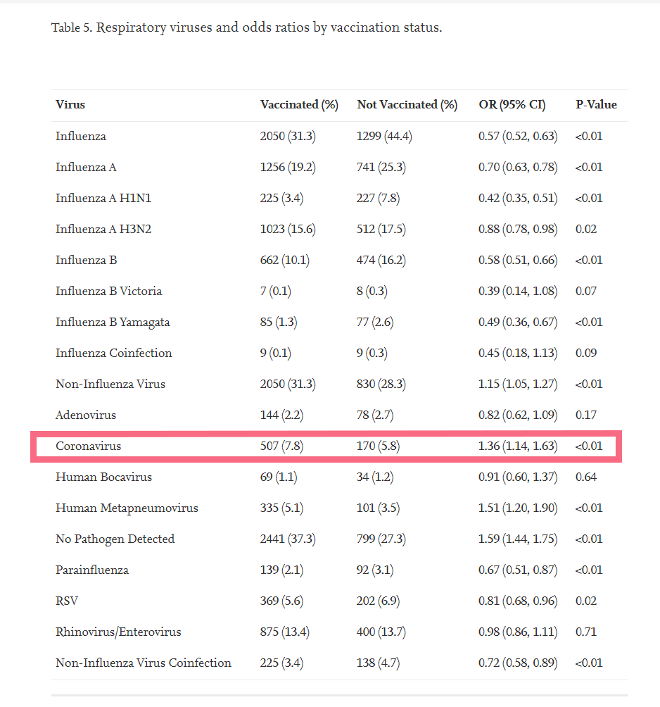 Jaws2002 Posted March 22, 2020 Posted March 22, 2020 (edited) 3 hours ago, CorvusX said: Existing vaccines and people that are resistant is the reason why we don't need such drastic actions for the "normal" Influenza every year. I wouldn't be so sure about how safe the vaccines are. Here is the result of a larger scale test done by the military, to determine if the flu vaccine interferes with other viruses. The results are pretty scary: https://www.ncbi.nlm.nih.gov/pubmed/31607599?fbclid=IwAR2FGPkFJtWOSedV57-XKyxpxeW79O6jTstv3iX2ixr2wIyq3u8eCmlY_N0 "CONCLUSIONS: Receipt of influenza vaccination was not associated with virus interference among our population. Examining virus interference by specific respiratory viruses showed mixed results. Vaccine derived virus interference was significantly associated with coronavirus and human metapneumovirus; however, significant protection with vaccination was associated not only with most influenza viruses, but also parainfluenza, RSV, and non-influenza virus coinfections." https://www.sciencedirect.com/science/article/pii/S0264410X19313647?via=ihub "coronavirus and human metapneumovirus in vaccinated individuals were significantly higher when compared to unvaccinated individuals" And here's the table of results that shows how much more likely you are to get corona virus if you got the flue vaccine: You are three times more likely to get infected if you got the flu vaccine. And since the Senior flu vaccine is a double dose compared to the normal one, that may explain why a lot more old people get hit so hard. Maybe this the reason some countries get hit so hard and other not so much. Edited March 22, 2020 by Jaws2002