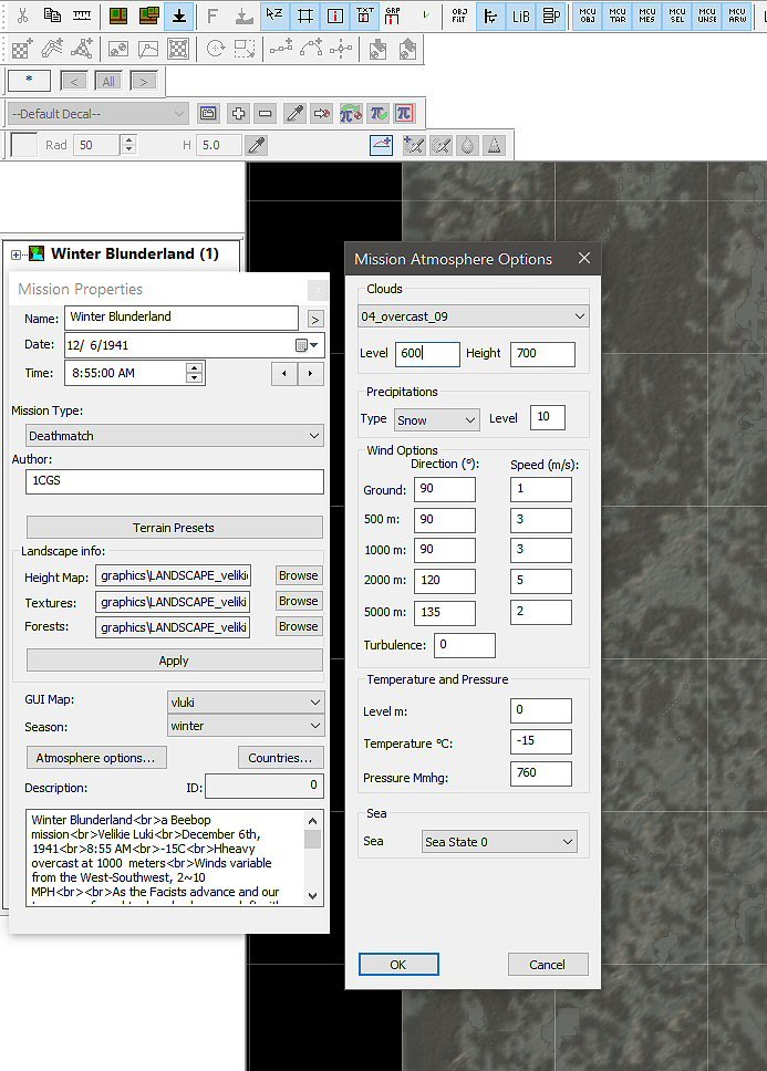 Beebop Posted March 18, 2020 Posted March 18, 2020 (edited) I am making a mission on the Velikie Luki map with the following conditions: Date: December 6th, 1941 Time: 9:55 AM Weather Conditions: Temperature -15C Atmosphere Options - 'Overcast 08" Precipitation - 'Snow' Level - '10' Wind: between 1~5 m/s at various altitudes Wind direction: '90' But when I start the mission everything is right except no snow. According to the manual the level can be set between 0 and 10 if using an Overcast, the higher the Precipitation Level number the heavier the snow. When I set "Snow" as a weather condition in a Quick Mission it's snowing, really hard. What have I missed in this scenario? Actually I'd like just a light snowfall that will swirl with the wind. Edited March 18, 2020 by Beebop