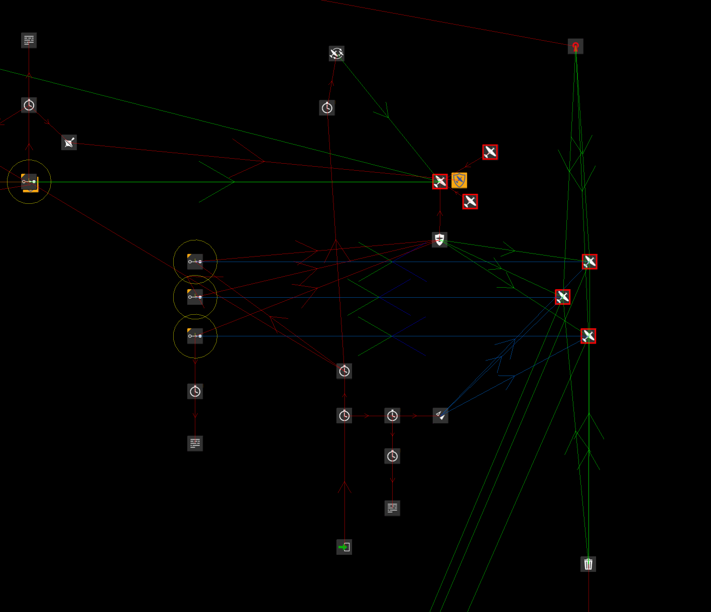 Sketch Posted March 25, 2020 Posted March 25, 2020 (edited) 3 hours ago, PatrickAWlson said: I am curious about something: if they can cover but cannot fly formation, what do they do? Crash into each other? Before I gave them a cover command, each had their own waypoint, so that they wouldn't crash into each other while in flight to their rendezvous with the bombers. Once they reached the destination, I only gave a single cover command to all the fighters because I do believe the ai is smart enough to avoid a collision while protecting a target. Having said all that, the ai is stupid; as I'm sure you're all too aware. So my official stance is, the ai will cover a target 60% of the time, every time. I do have video of them flying together while covering the bombers, and they never hit each other. It's a bit long: 57 minutes ago, Beebop said: Now the fighters don't spawn at all. ARRRGGHH!!!! These planes spawned before. ❓❓❓ I re-checked the mission and retried several times just to make sure everything I added had properly saved. (it did). I also tried restarting the computer just in case and I checked the mission file integrity in the ME. No problems noted. It looks like you had the fighters disabled by default. Did you plan to activate them at some point? I assume so, because you had an activation MCU tied to the bombers, but not to the fighters. When I checked for issues of your mission, I must have clicked 'enabled' without even thinking about it. 57 minutes ago, Beebop said: Since I am making a dogfight mission does the Cover MCU not work/mess up in that type of mission? I did have one in before and the fighters still spawned. If it's the mission type then I'll have to forgo the cover flight as the Ju-88's spawn and fly just fine. Their whole purpose is as a surprise for the players when they attack the harbor by the Player Spawn airfield. I just wanted some defense in case one of the players went after them if they were near the airfield. The Cover MCU isn't causing the planes to not spawn in and should work fine in your dogfight mission. When solving problems, try to imagine each MCU as an event in a chain of events. Sort of like Christmas lights, or dominoes that fall down... Something like that. I wish we had a better debugging system - where you can set a breakpoint on an MCU, and step through each MCU until you figure out what's going on, but I digress... Below is an image of how I think things through when setting up events or troubleshooting issues. In my experience, it's nearly always something that's easy to figure out, but because you've been staring at it so long; you're pulling teeth. It's why having a second pair of eyes (having someone else look at your code) is a great idea. As a side note, I think you're doing great! If you look back... way back... You can see some of my posts that are very similar when I first started learning the editor. I had the same frustrations, and had the exact same, "What the heck is going on!?" moments. I would bet other mission designers would say they too had the same difficulties when they learned the editor. If you can keep at it, you'll get "over the hump" so-to-speak and be able to create really cool and unique missions (because the editor is so powerful). Don't give up. Edited March 25, 2020 by [TWB]Sketch 1