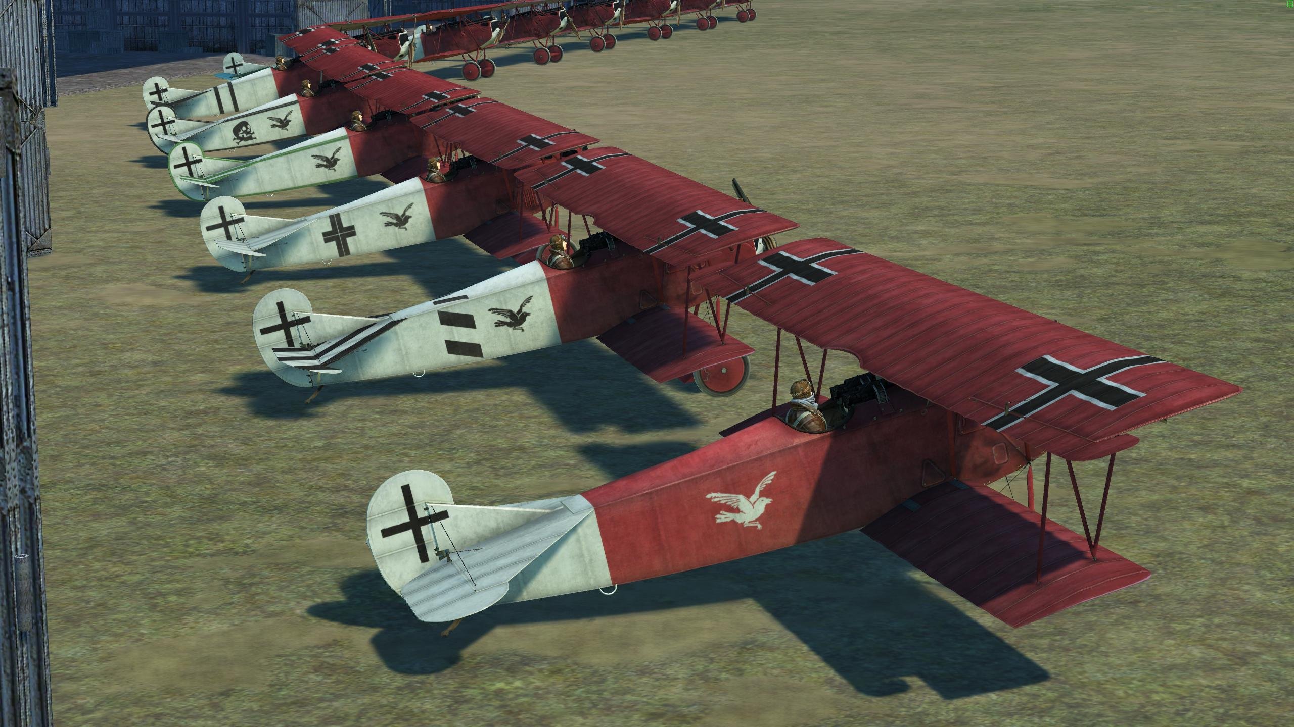 J5_Adam Posted March 29, 2020 Posted March 29, 2020 (edited) Here's a full compliment of Vanilla DVIIs and one DVIIF. Mostly Alb with a few OAW and Fokker built ones. Each aircraft has it's own alpha channel because the oval and round holes in almost every airplane that I could find sources for, as well as the little doors and louvers on the cowlings, varied a lot from plane to plane. I also did some neato stuff with spokes on a couple. Info on this squad is very little. I used the Osprey book by Greg VanWyngarden "Jasta 18-The Red Noses" and came across an awesome photo library that had some pictures I had never seen before. I also used Wing Nuts. The Aerodrome forum was pretty helpful too. I made some guess work on some things like the colours on the tailplanes. Hard to tell when all photos are B&W but it's a good of a guess as any and I think the end result wasn't too bad. I added some brass stuff up in front like some of the tubes at the front of the engine. If you know about Jasta 18 you'll see I didn't include Kandt. I won't get into it because it's too hard to explain. Let's say there's debate surrounding Kühne's and Kandt's aircraft. In the end I decided to call the slotted band aircraft, Kühne's. Once again, I say, I hope you enjoy these skins as much as I did wasting all that time making them. LOL Included in the Squadron Skin Pack: DVIIs Raben Müller Unknown 2 (4 "L"s cross) Maurer "A" - Green Maurer "B" - Blue Monnington Schultz Unknown 1 (wide black band) Glatz Kühne Schleichardt von Buren Küstner DL link: https://www.mediafire.com/file/u2y7x93wl9go58x/Raben_J18__DVII_skin_pack_Summer_1918.7z/file DVII 'F' Unmarked DL link: https://www.mediafire.com/file/v2j9di6e50yob90/FD7F_J18_Unmarked.7z/file Edited May 20, 2020 by Adam 2 5 3