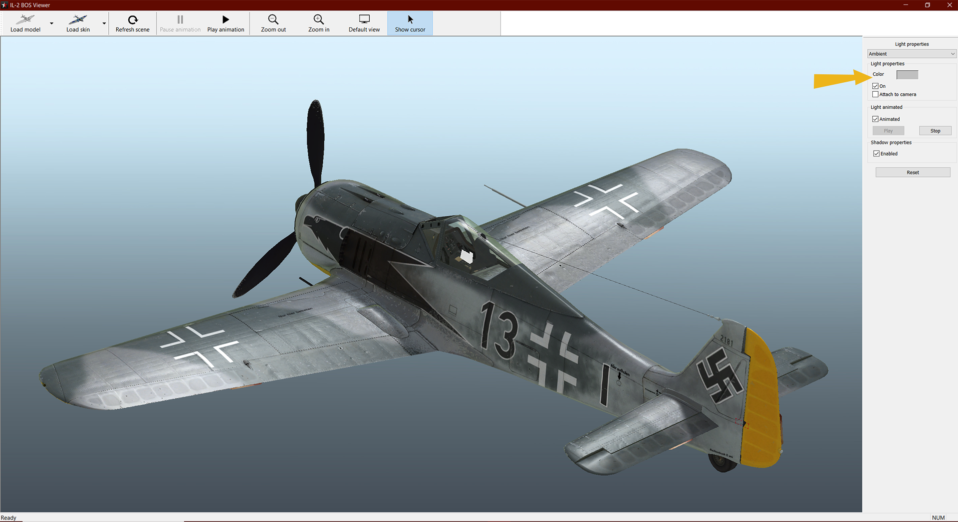 Jaws2002 Posted April 14, 2020 Posted April 14, 2020 On 4/8/2020 at 5:04 AM, [FAC]Ghost129er said: IDCP shared this post with info on reflections and stuff here: Where you can see the reflection of the aircraft on itself and stuff, however in the skin viewer, when I try to preview my skin and what it's like so far, this is the result I get: My question is, does the skin viewer use the Game's Config to show what it'll look like in game depending on your settings and etc? My GTS 450 can't do Ultra Graphics so it might be looking and exactly the finish I want but I'm not sure.. Thanks in advance The skin viewer does use the game lighting engine, you just have to select the right lighting options. In the light properties, select "Ambient". Then in the color menu, click on that rectangular box and select a light gray. here you can also test different shades of gray to see how the skin will look in different lighting conditions. Other tips. You can move the plane around in the viewer with the right mouse button held down. Also you should push the plane away from you first with the mouse wheel and then zoom in with the zoom at the top of the window, so the plane doesn't look like seen through a fish eye lens.