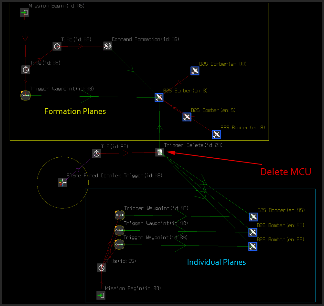 Sketch Posted April 10, 2020 Posted April 10, 2020 You would need some logic to make the Delete MCU fire. In my example, both the formation planes and the individual planes will get deleted when I'm in the complex trigger's area and I fire a flare. 1