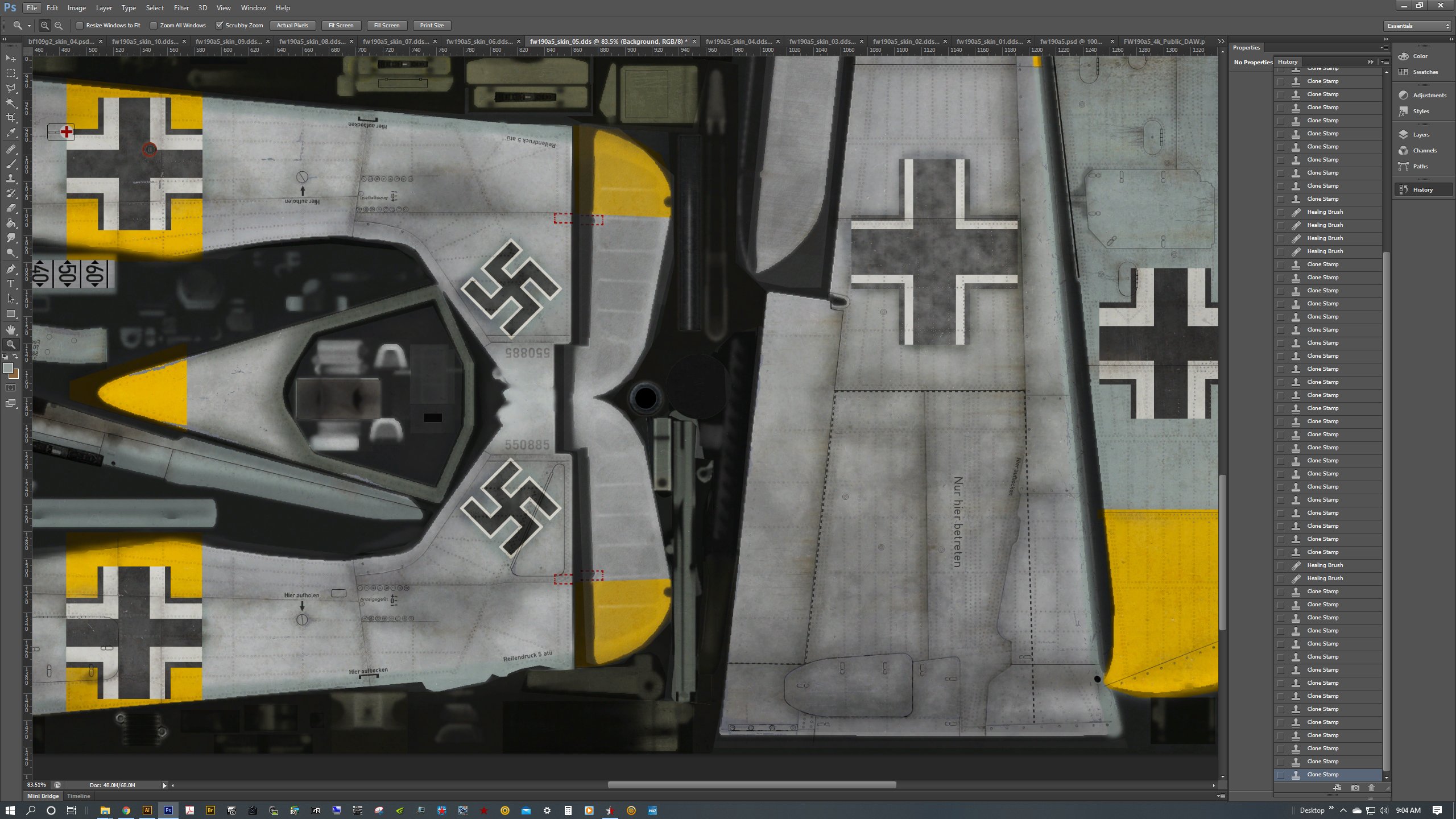 spudkopf Posted April 15, 2020 Posted April 15, 2020 (edited) Well forget everything I've written about skin_02 Leonhardt skin, I just re-checked my most recent extractions and I see that this has already been rectified, you can find the historically updated official skin here! The one thing I can take away from all this is to routinely extract files and check the contents for changes and or corrections. Was busy correcting the Fw109A6 skins and was cross-checking back against the A5 skins, when I noticed that one of the A5 Skins fw190a5_skin_11.dds "Hondt" was there but had not been historically corrected, and something seemed rather odd in there was paint missing from part of the aerial mast on the tail. Further examination revealed that this same skin appears as a Fw190A3 skin, namely that being fw190a3_skin_02.dds "Leonhardt", which would appear to be quite incorrect. I have added the most recently extracted Hondt skin and added it to the list below, with a fixed the aerial mast as this was till partly painted as if it was an A3 skin. The spoiler below is shows the updated Hondt skin, and also what google suggests what Leonhardt's scheme should look like. Spoiler Hondt: Most recently extracted Hondt: Old extraction which exhibits a slight colour variation (whiter white) to that of the latest extracted file. Updated skins for Grabmann (skin_05) and Kunze (skin_08) have been added, old files retained but now have an "_old" in the file names (19/02/2022). Spoiler Grabmann - fw190a5_skin_05.dds Kunze - fw190a5_skin_08.dds Original post follows with new link added: Well as I hinted at in my Bf109G4 historic correction thread, I’ve burned some midnight oil yet again, so please find below links to the what's currently the last of the official 4K skins needing to be re-made historical, in the form of the Fw190A5. Spoiler Who'd have thought you could use so many clones stamps for such a small amount of realestate, noting that there are many, many more running off the visible history tab, then multiply this by 10. fw190a5.dds fw190a5_skin_01.dds fw190a5_skin_02.dds fw190a5_skin_03.dds fw190a5_skin_04.dds fw190a5_skin_05.dds Old Skin 2020 fw190a5_skin_05.dds Current skin 19/02/2022 fw190a5_skin_06.dds fw190a5_skin_07.dds fw190a5_skin_08.dds Old Skin 2020 fw190a5_skin_08.dds Current skin 19/02/2022 fw190a5_skin_09.dds fw190a5_skin_10.dds fw190a5_skin_11.dds Now updated with the latest extracted skin 19/02/2022Please note: skin fw190a5_skin_11.dds was created using Nvidia's new Texture Tools plug-in for Photoshop, sadly I have not been able to confirm the optimum settings for this plug-in thus far, I've not seen any issues with this skin myself, however please do let me know if anything seems off. Default = \IL-2 Sturmovik Battle of Stalingrad\data\graphics\Planes\target folder\Textures\?????.dds Others = \IL-2 Sturmovik Battle of Stalingrad\data\graphics\skins\target folder\?????_skin_*.dds Target folder = fw190a5 Make sure mods is checked and as usual any problems just let me know. As usual enjoy Edited July 6, 2022 by spudkopf New link and info added 1 11 4