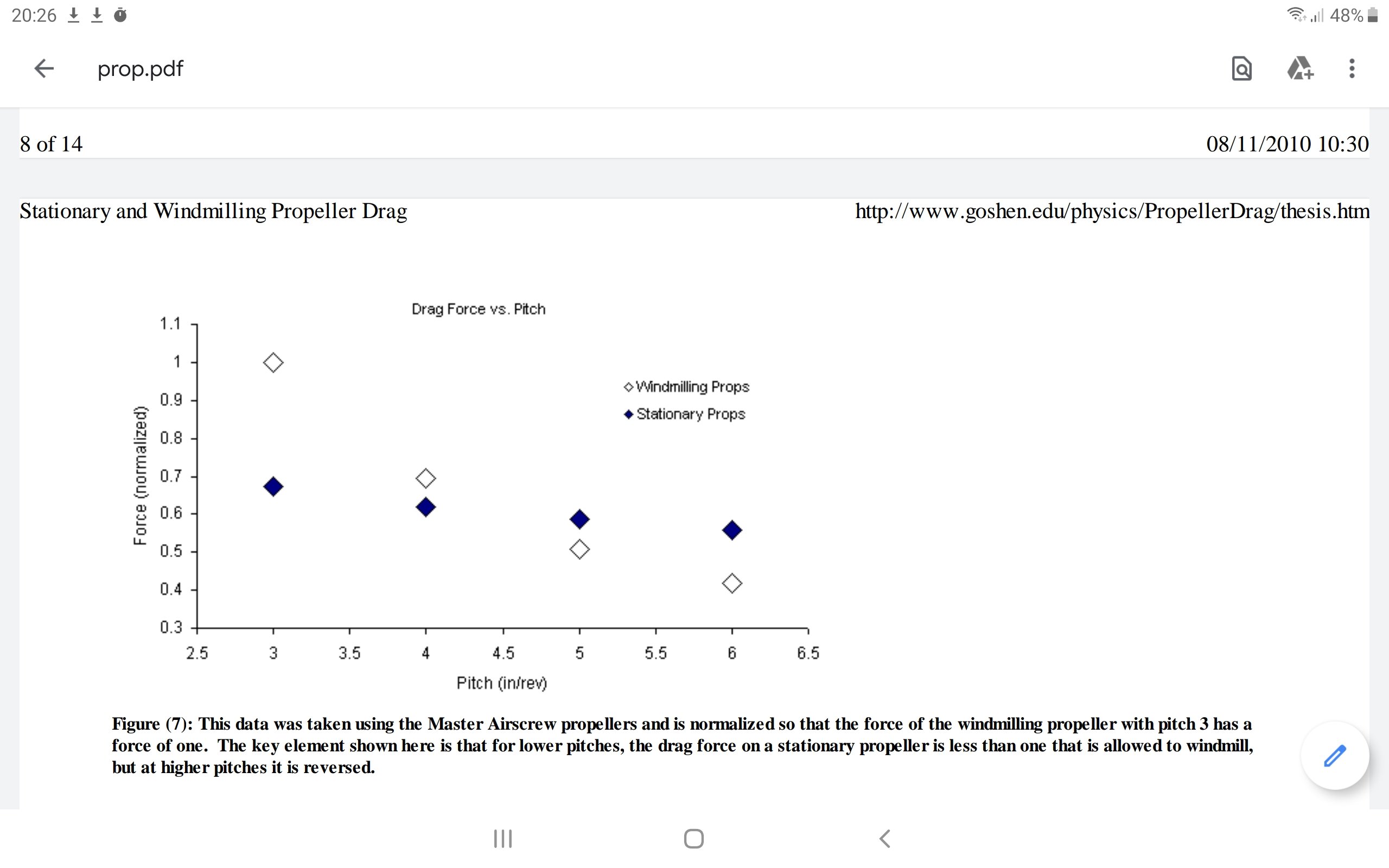 Nocke Posted April 25, 2020 Author Posted April 25, 2020 Found this, experimental work. I started thinking about this wondering if to slow down the plane coming on for landing I should go high or low pitch. Low pitch seems to be the answer. Interesting to see how the answer depends on pitch. 1