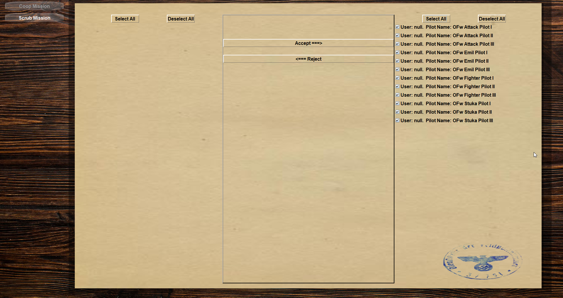 [808_BOB]_RlCK Posted October 13, 2020 Posted October 13, 2020 Patt, is there a way to fix this issue? Whenever you update PWCG, I have to delete entire campaigns. It is not possible to generate missions because the software doesn't recognise the "Cooperative users" anymore. Even when everything should technically work... Coop Mission button is greyed out. Cannot generate a mission. Is there a workaround or do I have to delete the campaign and start anew?