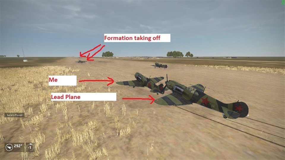 FTC_Mars Posted January 3, 2021 Posted January 3, 2021 Hi Patrick, I've got another sample of a misplaced airfield start location that could help you debug takeoff formation positioning. I'm flying La-5s from Illarionovskiy. Missions start on the runway. I've flown multiple times from this airstrip and everything works when there are up to 4 planes on the mission. This mission generated a 6 plane formation and the lead plane AI messes up the takeoff. Steps to reproduce: Start mission 'Stalingrad 1942-08-11 GROUND_ATTACK' Wait and watch (using F2 to see down the runway from a higher vantage) What I saw: The lead plane does not take off. It taxiis off the runway and around to the right using the taxiway. It taxis around to the back of the waiting take-off formation. The lead plane moves right up to my plane, trying to take my exact position on the ground. As soon as it runs into my plane and stops then the number 2 plane in formation takes off, followed by planes 3-5 as normal. What I expected to see: The lead plane should take off then the other planes should follow. Stalingrad202101031601527.zip