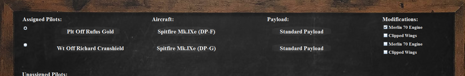PatrickAWlson Posted April 30, 2021 Author Posted April 30, 2021 The short version is posted in the original post. The longer version is posted as a new post on page 38 of that thread. From that post ... Where did my favorite mod go? if you don't see it then it is considered a "stock" modification and will always be there. The planes have more modifications than PWCG can handle visually. The Pfalz alone has 9. This new system auto adds the mods that most people will use anyway. How many Allied pilots really refuse to use 150 octane fuel? A further advantage is that the Ai flights will also have access to these mods, where before they did not. The AI probably doesn't need a mirror but it can certainly use better gas. Open to discussion as to which ones should or should not be automatically used.