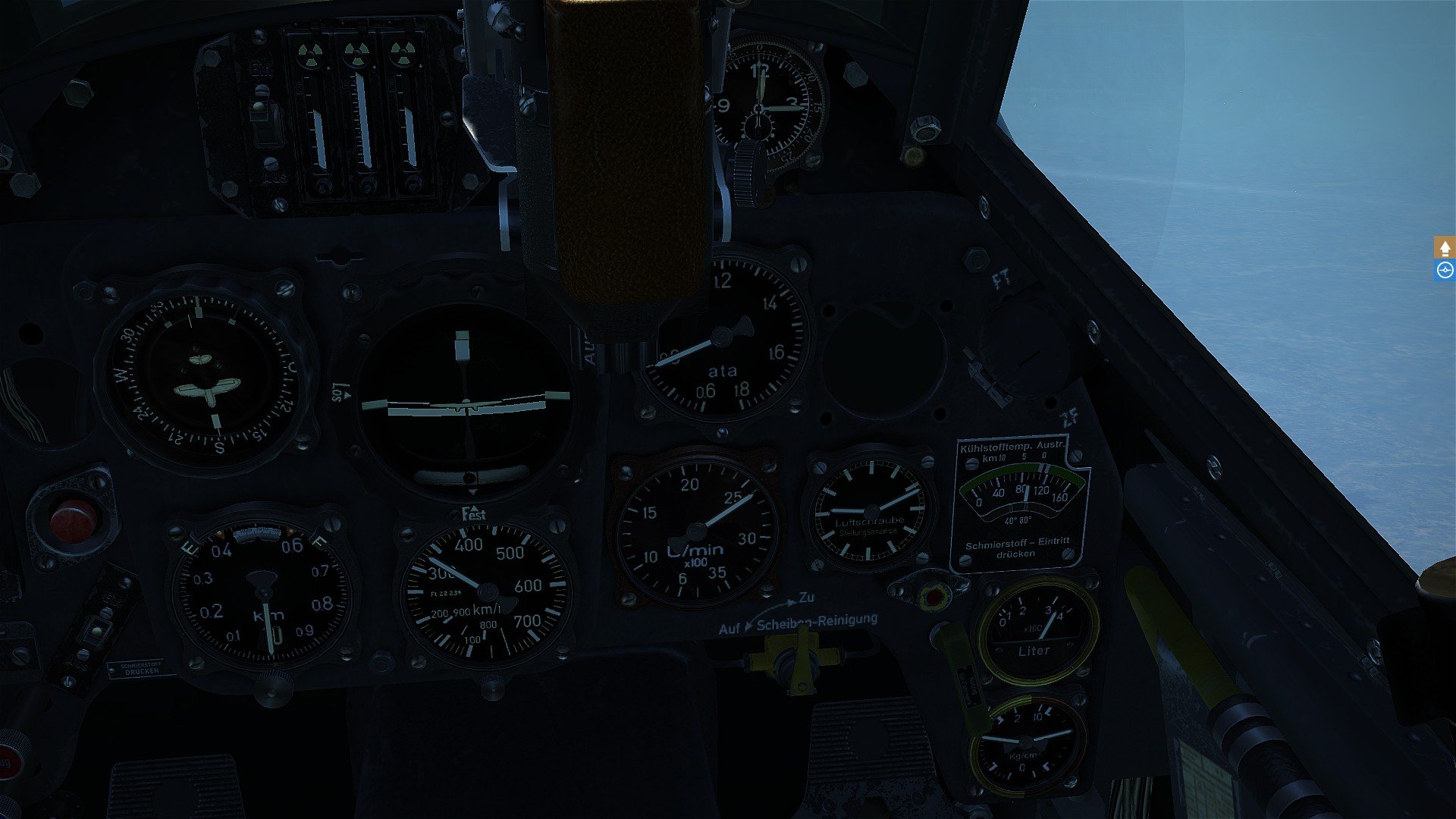 Raven109 Posted May 31, 2020 Posted May 31, 2020 (edited) Unfortunately, older pictures are not clear enough to see the temperature values on the gauge or the placard (so by looking at them we could at least avoid making mistakes based on new, restored 109 models). But you can still see that the placard is there and the temperatures are on the placard (even in the manuals). The gauge and the placard are different objects, and as far as I can tell, the gauge can be installed without the placard. So, if it wasn't necessary, why did so many planes have it? As I see it, it could certainly lead to confusion - but perhaps, these values were not that important to pilots (as we make them to be), since the radiator was automatic, and most of the time it was hands off. Interesting to note is that there are G6 models which have just the gauge without the placard. And the late 1944 models seem to have removed it (e.g the K4). This could indicate that the placard was not that important. I agree that the manuals should be the ones that should be followed, I can see the values both in the 109G manual, and the DB605 manual, but still can't help myself being curious as to why the placard shows something else. In the cockpit below (G2) if you zoom in, you can clearly see that a FL20342 is being used. Seems to have no switch button. The limits are still present though. If the gauge itself could not be switched between showing 2 temperatures (oil and coolant) and the placard values were irrelevant, why go through all the trouble of adding the placard? (as a side note, see the ATA gauge limited to 1.3) 3 hours ago, JtD said: Edit: I found the figures for the markings of 78° at 10km and such already in a May 1941 Bf109F manual, it's exactly the same text. Which is wrong already there, and definitely a leftover from earlier versions. The correct version for a Bf109G would probably look like this, which corresponds to the figures from the compact flight manual: https://upload.wikimedia.org/wikipedia/commons/9/96/Messerschmitt_Bf_109_G-6R3_Cockpit.jpg Later edit: I just noticed you updated your post. Good find, so it seems that there were at least multiple scales for the placard. The values from your pic correspond (at least for the 8k value) to the what the DB605A manual lists. For the "over 8k" setting the placard shows 95*C, while the manual lists 98*C @ 9k, 97*C @ 10k. The 605 values are given for 0,75 atue. From my point of view, the conclusions regarding the 109 temperature gauge are these: a. The game models one type of placard. The texture doesn't seem to be wrong, and it could be that some aircraft had the wrong placard installed. It could also be that the texture is wrong in that it's missing the 3 lines which correspond to the 10 5 0 km values, and so players assume that the actual position of the 10 5 0 values along the temperature tape are the max temp values that they should follow at the different altitudes. b. The 109 does have an automatic radiator system, however we cannot ignore the fact that automatic systems still fail, so then the pilot does need some guidance regarding the temperatures the engine can be run safely at a given altitude. c. Later 109 models (mid 1944 onwards) don't have the placard anymore, which might indicate that it wasn't that important to begin with. This becomes more evident if we consider the models that had the wrong placard and no one bothered to update it. Here's a crop from a ww2 cockpit: Full image here: Spoiler The numbers on the placard could be 10 5 0 , in the top right corner (as we've seen in the other pictures). Now, I don't know if it's just me, but you can also notice faint lines on the tape above the actual temperatures scale (you can also see these red lines in the pics I've posted before). All lines seem to correspond to values between 80*C and 120*C (which is what we get from the 109G manuals). So this, in my opinion, double confirms that the placard modeled in-game is not the one which corresponds to the actual temperatures for the 109G, or at least, that its missing these lines that we see on the tape (In game we do have the white-red-white lines, but these seem to be centered around the 110*C value, and could indicate a maximum allowable value). Edited May 31, 2020 by Raven109 1