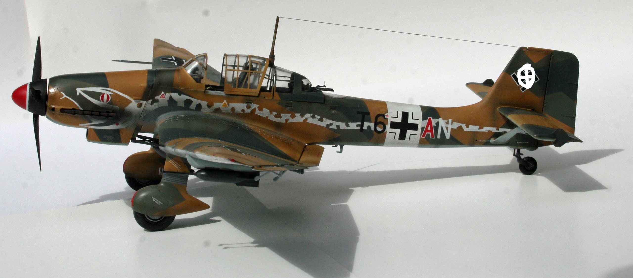 Blitzen Posted August 11, 2019 Posted August 11, 2019 (edited) Just finished the big 1/24th scale Ju-87D with a 28" wingspan(!) I did say BIG! I'm generally positive about the results although I must say for the price it doesn't quite measure up to its previous Messerschmitts ,Spitfires & Hurricanes or for that matter the 1/24th scale Airfix Ju-87B.It has the feel of being scaled up from a 1/32nd kit or maybe even a 1/48th version ( the same as the 1/24th scale Swordfish of a few years back...) It all fits together all right but there is a bit of gap filling necessary esp around the fuselage.It lacks quite a bit of interior detail & exterior modelling we have come to expect.The engine is completely sealed off with no chance of seeing the work that goes into building it. The instruction book is adequate but lacking in most painting instructions and the decal sheet offers only two variations on the Stuka theme & neither is very interesting , to me, visually...Finally the kit includes parts for three different payloads including the cannon packing G model BUT there are several missing parts most notably dive brake supports ...I don't know why they are missing from the kit & the instruction sheets(?) BUT it is the Dora & that has a real attraction I couldn't pass up! I got the kit at a pretty good discounted price which helped BUT after buying after market CAM decals to supplement the kits paltry ones ,the Montex X supermasks for the fuselage snake , paint colors i didn't have on hand, and finally safety harnesses ( because they weren't included in the kit , the total price had gone into the red zone. You go to hell in small steps,I guess... So I guess you could say this offers real possibilities for those modelers who want to super-detail & have those sorts of abilities...I don't so this is a straight from the box build, with apologies to the Berta stuka that originally had these markings.i stole the idea from a skin found here in Battle of Stalingrad ... Edited August 11, 2019 by Blitzen misspelled words 4 2