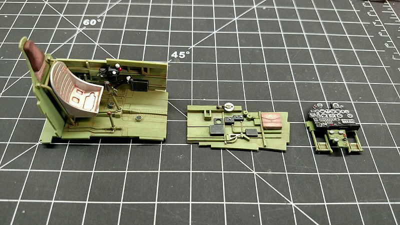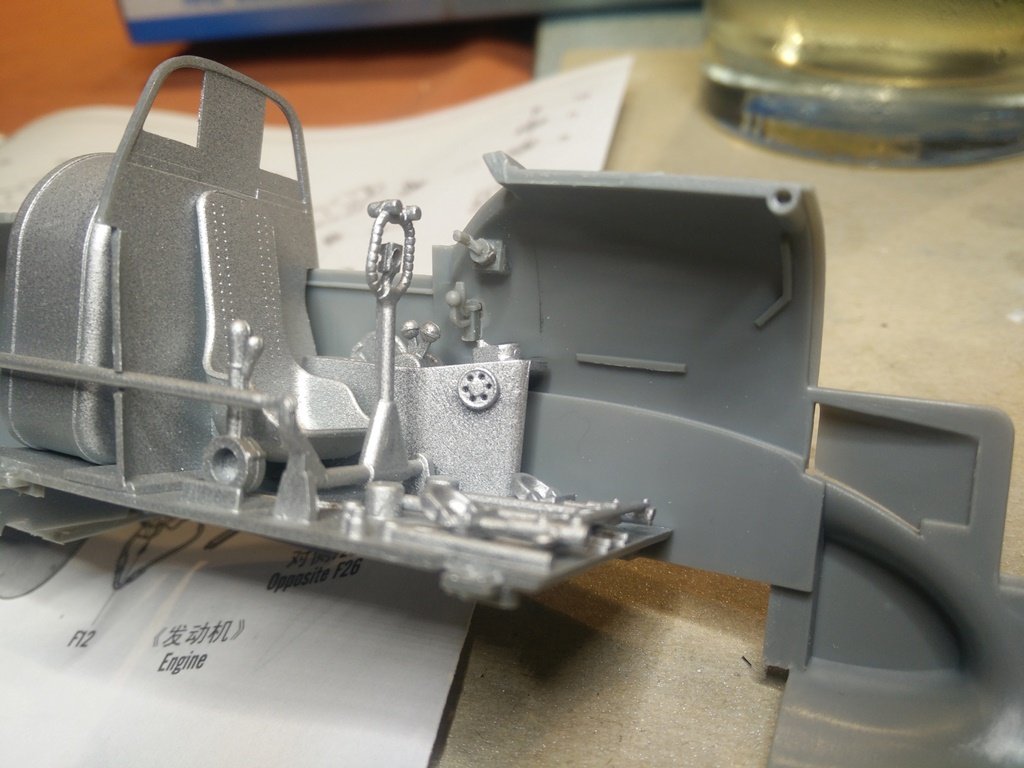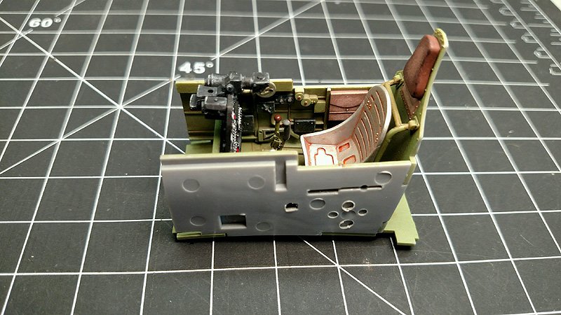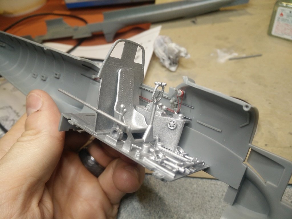 40plus Posted October 17, 2019 Posted October 17, 2019 Here's a progress update on my IL-2 single seater. I'm using the game as my primary reference except for feature such as open hatches and engine details which, of course, aren't shown in-game. It's a 1:32 Hobby Boss kit and has great detail but I'm experimenting with adding additional features. I'm start, as is standard with the cockpit. The main detail I wanted to add was the cables that wind around the trim crank and run up the left side of the cockpit, seen here, top middle: The kit includes the crank already with good detail: I used 0.2mm copper wire that I salvaged from an old toy DC motor, stretched some sprew to make small pegs to stand in for pulleys and ran the wire as close as possible to where it should be: Added some 0.5mm lead wire for the fuel lines: And here it is with some other parts dry fit. I'm reasonably happy with how it turned out but I couldn't quite get the red wire as taught as I would like it to be. I think I'll try to make it tighter now that all glue is fully cured but it's solidly in the good enough camp. Not everything is quite to scale but we're talking fractions of millimeters here so again, good enough. I'm no Feathered_IV. I can't work on atomic scales. ? I think it'll look great once it's all painted but for now I've started assembling the engine and researching where to add wires n' tubes. 1 2