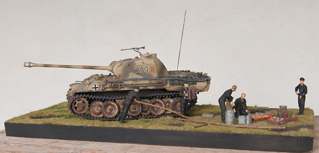 Smouch Posted July 27, 2016 Posted July 27, 2016 Here are some shots of my second attempt at a Diorama. The tanks is Tamiya's 1/35 Panther Ausf A, with the following extras: Friulmodels ATL-08 tracks, Verlinden #2776 German WWII Tanker Camping Grounds, Miniart 35132 Tank Crew Royal Model Tow Rope Grass was laid down with the aid of a static grass applicator. Predominatley used Lifecolor paints with some Humbrol and the mud was from Citadel. Cheers ~S~ 5