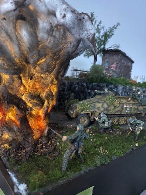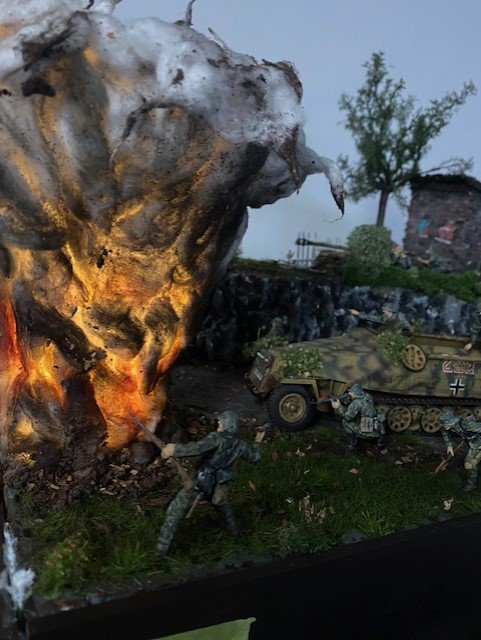 Vishnu Posted March 28, 2024 Posted March 28, 2024 (edited) "Russia, Spring, 1943" 100% Scratch built, including shed, base, tree, and the explosion. Still need to tweak the base and put a second coat of stain on it, otherwise it's finished. It took me about 6 months to complete, working mainly on weekends, and a few hours here and there after work during the week. A couple photos near the end are in low light to highlight the artillery strike, but the terrible video at the beginning gives you the idea of the explosion in low light. Hope you guys like it, it was a lot of work! Edited March 29, 2024 by Vishnu 13 2 2