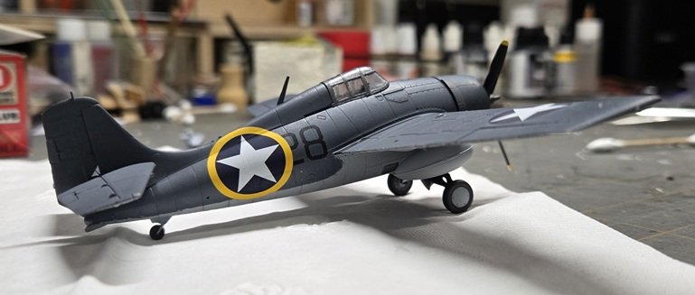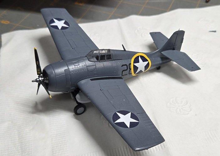 No_85_Gramps Posted July 30 Posted July 30 1 hour ago, RedeyeStorm said: Odd placement of the number 28, partly under the national marking. Is there a story attached to that? According to this site: F4FColors The reason: With Operation Torch, the invasion of North Africa in November of 1942, the concern of Allied aircraft being fired on by friendly troops once again arose. To better identify Allied aircraft a yellow ring was placed around the outside of the U.S. national insignia. This was only called for on the fuselage and lower wings, but it was sometimes applied to the upper wing also. The Airfix kit only provided the two with the yellow ring for the fuselage. 2 1