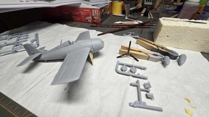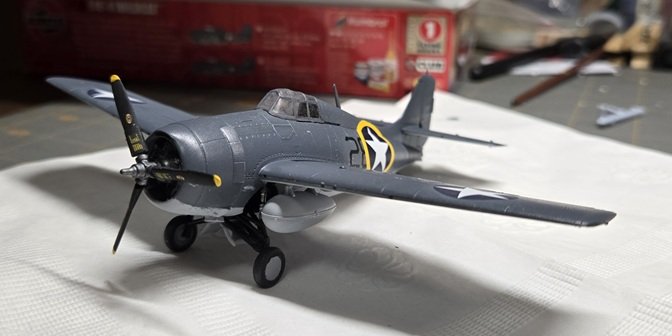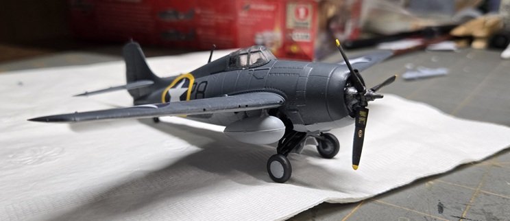 Hoots Posted July 20 Posted July 20 3 hours ago, No_85_Gramps said: F4F-4 update. Sunday, finally dry enough to get a coat of primer on. The plan was to do it this past Wednesday, got up, warm but not so humid. Might as well get the lawn mower out and take care of the yard. Bad idea, some ground bees didn't take kindly to me disturbing them, resulting in 3 bee stings. Thursday didn't pan out either, 5 hour shopping trip with the wife, at our age that's enough to wipe us out. Friday and Saturday were no go's, humidity back up. I did manage to finish off the prop at least, need to touch up the tips. I'll let that primer dry out for a couple of days, humidity levels should be down the next few days. So much for the idea of a quick build! Man alive, that was a rollercoaster of a read 2 1