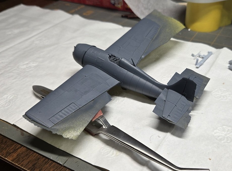 No_85_Gramps Posted July 20 Posted July 20 F4F-4 update. Sunday, finally dry enough to get a coat of primer on. The plan was to do it this past Wednesday, got up, warm but not so humid. Might as well get the lawn mower out and take care of the yard. Bad idea, some ground bees didn't take kindly to me disturbing them, resulting in 3 bee stings. Thursday didn't pan out either, 5 hour shopping trip with the wife, at our age that's enough to wipe us out. Friday and Saturday were no go's, humidity back up. I did manage to finish off the prop at least, need to touch up the tips. I'll let that primer dry out for a couple of days, humidity levels should be down the next few days. So much for the idea of a quick build! 5 3
