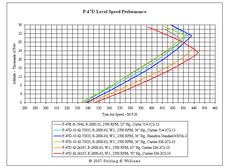 ICDP Posted June 10, 2020 Posted June 10, 2020 (edited) Good find Raven. It seems to explain the P47D in sim performance. I did find this taken from AHT (great book if you can find it cheap). If you are in the UK this price from Amazon is a steal. https://www.amazon.co.uk/AMERICAS-HUNDRED-THOUSAND-Production-Fighters/dp/0764300725 If you look at the P-47D-25 graph it does have a straight line for performance from just under 25,000ft - just under 30,000ft. These are at combat power (WEP) according to the associated text. Edited June 10, 2020 by ICDP 1