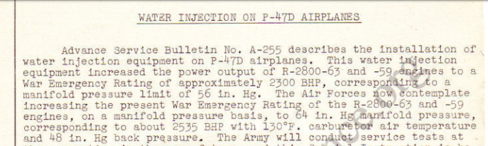 Tbolt47 Posted June 10, 2020 Posted June 10, 2020 1 hour ago, Raven109 said: So, if we go and read the reports, we will see that the P-47 rated at 56"Hg was using another supercharger turbo regulator than the 64"Hg P-47 . The first uses the A-17 regulator to maintain 56" boost up to 33000ft (you can see this on the D-10 performance charts); this regulator cannot be used with 64"Hg boost. To get 64" Hg, for the R-2800-59, you need to use the A-13 or A-23 turbo supercharger regulators. This shows that the power systems are different between the 56" Hg and the 64" Hg planes. Whole report here: http://www.wwiiaircraftperformance.org/p-47/P-47_Water-Injection_3feb44.pdf We can also see that the 56" Hg for the D-10 was obtained by using water: http://www.wwiiaircraftperformance.org/p-47/P-47D_43-75035_Eng-47-1652-A.pdf The table in the last document indicates that the A-17 s/c turbo regulator has an influence on maximum boost altitude, as noted on the climb table. These are two different engine setups and their performance must not be combined to obtain just one a/c. Therefore, I think it's correct to assume that, since the D-28 has: a. An R-2800-59 engine, and b. 64"Hg boost with water injection It's using an A-13/23 regulator and that it has a similar performance to the D-42, that means that the performance is the orange/red line which you can see here (the D-42 is 1"Hg over the D-28, so perhaps the D-28 will be a bit slower): which, as tested by @ICDP, shows that it's what we have in-game. So it's close to the orange/red line for speed, has anyone tested the climb performance, how does it compare to the test? By the way it's a D-22 not D-42, you are reading the aircraft serial number.
