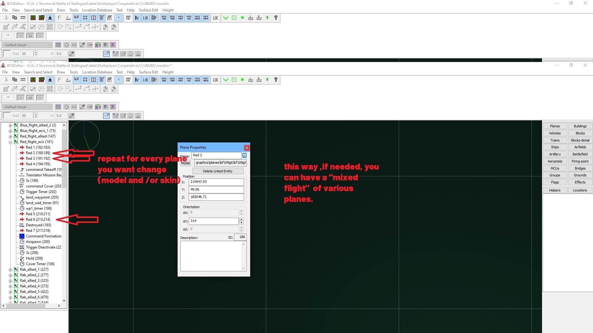 SYN_Vander Posted June 13, 2020 Posted June 13, 2020 (edited) 14 hours ago, Mysticpuma said: Thanks for the reply but sadly I am banging my head against a wall. Loading the mission created in EME into FME, there is no way of selecting any of the aircraft (they don't appear when zoomed in either), this thereby means the skins cannot be changed......which is the whole point of the thread Really do appreciate the time and effort put in trying to get a workaround for this ommission by the dev team, maybe they will visit the issue at some point in the future. Just follow the procedure as given and you needn't worry about seeing the units on the actual map. It is not necessary. If you want to do more, than of course it will help to see the planes on the map with their waypoints. What you are looking at in your screenshot is the most SW part of the map, zoomed in. Use scroll wheel to zoom out as far as you can and then use right cklick + hold to drag the map around. Careful, because it's quite big. In your mission, all the units are to the NW. To quickly focus on a particular unit, double click on it from the list. Edited June 13, 2020 by SYN_Vander 1
