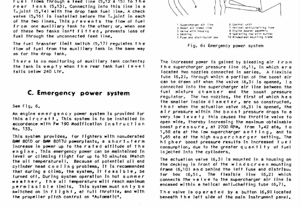 357th_KW Posted June 30, 2020 Posted June 30, 2020 On 6/22/2020 at 10:13 PM, 41Sqn_Skipper said: I was unable to find anything on a Luftwaffe pilot named "Dieter Herman", what's the name of the book? Can you or anyone else quote that section? Does "maximum power" mean 1.42 ATA or "ungoverned manfold pressure"? How does a Fw190 with disabled boost control work then, considering that the RPM and mixture is linked to the throttle? On 6/23/2020 at 1:30 AM, Bremspropeller said: I just searched through my german copy of that book, but I couldn't find the story - do you have the pilot's name by any chance? Keep in mind that un-derating (or would that be re-rating?) the engine is different to installing a Rüstsatz to increase performance. I don't think there's any ungoverned boost-control in the 801. Jule Meimberg wrote of de-rated 190A-2s during his time flying them at the channel. They also just used to block a portion of the throttle-travel to physically limit the commanded MAP. I'm not sure if its the same story that was being referenced, but Norbert Hannig mentioned this in his book "Luftwaffe Fighter Ace". While working as an instructor with 1/Jgr Ost they were sent into combat against an 8th Air Force raid. In the book he mentions that they were using 190A-6s at this time and described the limiter as follows: "When I climbed into the cockpit of my machine and checked the controls I discovered that a screw was inhibiting the full travel of the throttle. This had the effect of reducing engine output by ten percent, which was a justifiable measure on a training aircraft. It helped to protect the engine and increased its number of flying hours. But in combat it could mean the difference between life or death if maximum engine power was not available. When I asked the mechanic why this locking screw had not been removed his answer was "Orders from above ..." A few pages later he wrote: "I rammed the throttle forward - I'd made sure all the Einsatzstaffel machines had had those damned inhibitor screws removed ... " 1