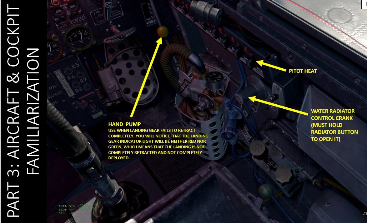 Raven109 Posted June 21, 2020 Posted June 21, 2020 (edited) Regarding your last point, in the real aircraft that is indeed the manual fuel pump handle. I think in CoD it doesn't do anything. IIRC, you can use the wheel breaks to turn tighter, the 109E models from CoD didn't have a lockable tail wheel in real life. Edited June 21, 2020 by Raven109