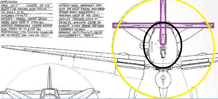 unreasonable Posted September 19, 2020 Posted September 19, 2020 6 hours ago, JG7_X-Man said: Maybe we do have an issue with all aircraft but the 109 LOL. With the assumption that you are firing on an Bf 109 from the rear, level flight and at perfect convergence range, It seems to me that the most probable kill would be to: hit the propeller (IN YELLOW) (...as your rounds are not harmonized with the 109's engine) which would in real life destroy the aircraft. Since that is not modeled in game (not sure why not...), next probable damage would be to the cooling system in the wing root, the wing root itself and the landing gear housing, which is also in the yellow area. The second most probable area would be the empennage (tail assembly) area. However, the probability of a hit would more likely be (IN BLACK) that houses the fuel tank (than the thin margin of hitting the actual vertical and horizontal stabilizer (IN PURPLE) within the black oval. That said, it's my contention that when it comes to firing on a WWII fighter aircraft from the rear at level flight: The probability of .50 cal ripping off the tail of a non maneuvering 109 is highly improbable (...but not implausible). The 20 mm round as it has more explosive power than the .50 cal would inflict more damage to said area and more probably(...but not definitely) rip off the tail of a non maneuvering allied fighter aircraft. The probability of shooting off a propeller blade, rupturing a fuel tank, hitting a coolant line/hydraulic line/landing gear assembly (which would more than likely deploy the landing gear) is higher in my opinion than ripping off the actual vertical and horizontal stabilizer. To summarize: "Maybe we do have an issue with all aircraft except the 109". Based on the surface area, It should be pretty hard to shoot the tail off of any aircraft from the 6 o'clock position. Mostly agree, except: the probability of hitting the spinning propeller is (almost) identical to that of hitting the propeller when it is stationary: so the yellow area represents a chance of a hit, equal to the area of the actual blades as shown divided by the yellow area, minus the blocking bits in both cases. It would be better to just highlight the area of the actual blades: roughly equal to the area of the black oval. Hits to the propeller disc are modelled: if you hit the propeller disc with a round with HE you can get splinter damage to nearby areas. Firing a 50 cal at the prop disc also produces the "hit debris" decal for a proportion of hits, but as far as I can see there is no resultant damage to the engine. I am not sure why there would be, necessarily. It would take a number of hits close together from 50 cals to rip off a propeller blade: I do not see this as likely. That aside I agree - the actual tail area which is the cause of so much grief is tiny, and can only be blocking a proportion of hits from a six o'clock position, if indeed it is. The question then is, if you get a lot of hits in the black oval, most of which do not actually get blocked by the vertical stabiliser, what happens? You would eventually cause a fuel leak, fire and/or PK, after you defeat the armour and self sealing, but the issue is how many hits are needed to create these effects. 2