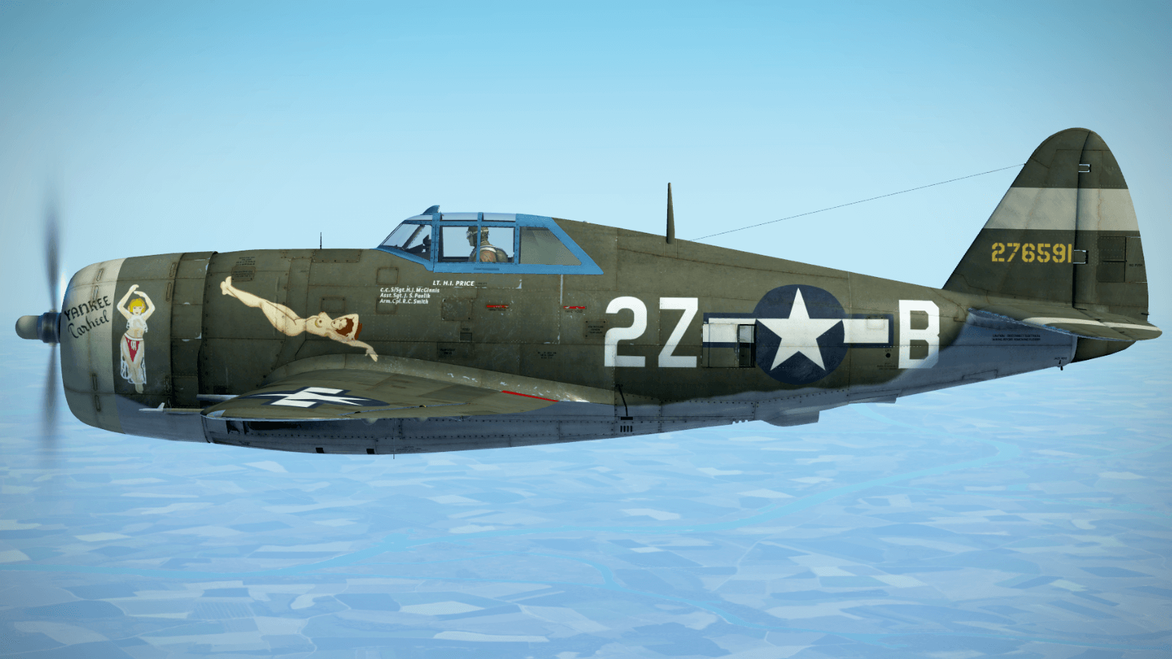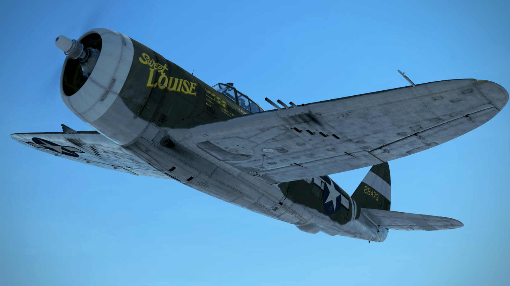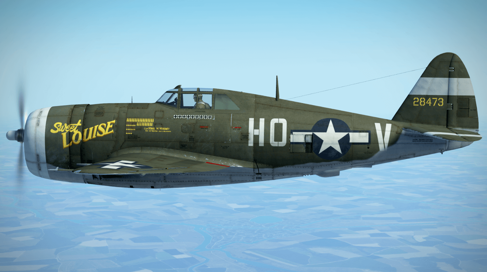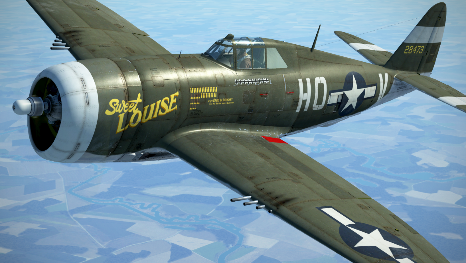 352nd_Siqhter Posted July 31, 2020 Author Posted July 31, 2020 This Razorback named 'Sweet Louise' was flown by Capt. Virgil Meroney of the 487th FS, 352nd FG. Two additional names adorn the starboard side of the aircraft, 'Miss Josephine' was the wife of his crew chief, S/Sgt. Albert Giesting, and 'Hedy' the wife of his assistant, Sgt. Jack Gillenwater. Capt. Meroney was the only P-47 ace in the history of the 352nd. Siqhter DOWNLOAD HERE - https://www.lockonfiles.com/files/file/3849-p-47-d22-sweet-louise-of-the-352nd-fighter-group/ 5