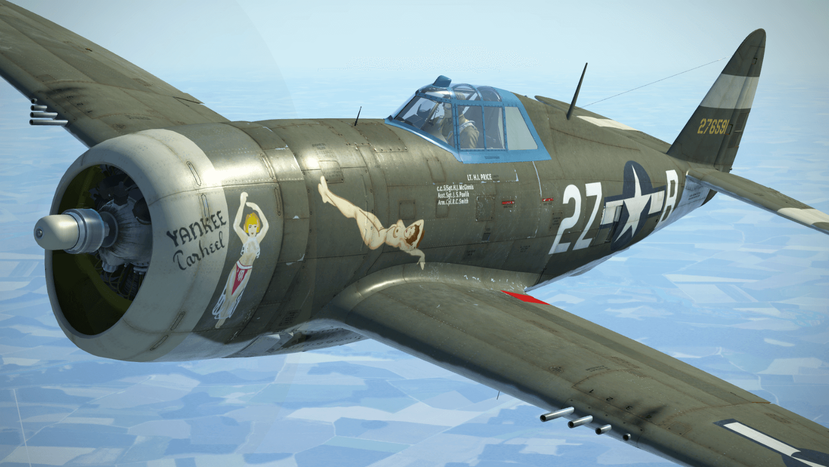 cripplehawk Posted September 14, 2022 Posted September 14, 2022 On 7/29/2020 at 9:22 PM, 352nd_Siqhter said: Another P-47-D22 of the 510th FS, 405th FG, 'Yankee Tarheel' was flown by Lt. Howard Price. Lt. Price was shot down over the Ruhr Valley in April 1945 and spent 9 days as a POW. All nose art was done by hand. Siqhter DOWNLOAD HERE - https://www.lockonfiles.com/files/file/3848-p-47-d22-yankee-tarheel-of-the-510th-fs-405th-fg/ Alas it is not on HSD. Do you have another location for "Yankee Tarheel"? 1