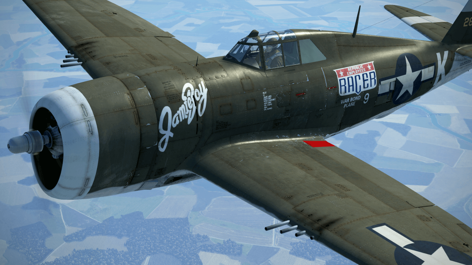 352nd_Siqhter Posted August 2, 2020 Author Posted August 2, 2020 P-47-D22 'Jamie Boy/The West "by gawd" Virginian' was flown by Lt. Jamie Laing and Lt. Robert 'Punchy' Powell, Jr. Lt. Laing shared his aircraft with Lt. Powell when he first arrived at Bodney. A slightly different version of Punchy's nose art is also found on his P-51B and D. I am also releasing my six aircraft P-47 352nd Fighter Group skinpack. If you have already downloaded the previous 352nd skins, there is nothing new. If you wish to download these and ensure you have the most recent versions, just drop them in your skins folder and override the old ones. Siqhter DOWNLOAD HERE - https://www.lockonfiles.com/files/file/3858-p-47-d22-jamie-boythe-west-by-gawd-virginian-of-the-352nd-fg/ DOWNLOAD 352nd FG 'Razorback' Skinpack (six aircraft) - https://www.dropbox.com/sh/s7b6a73vtqkp5xu/AADyMeBKx_sq96-LIUx9L7w2a?dl=0 9 3 2