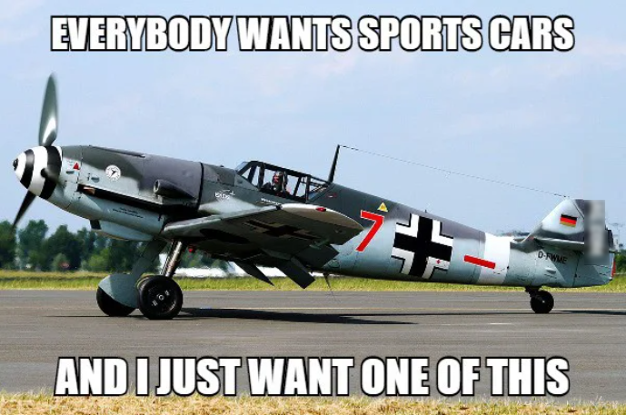 O_DesoLunatic Posted July 15, 2020 Posted July 15, 2020 (edited) Hi All, Since @CanadaOne surprisingly gifted me a collector plane I now have no choice but to spread the love by doing a give-away too - there are 3 categories to compete in and 3 collector planes in total that will be given away: Fw190a3, Bf109g6 and freestyle. So in case of any of the categories the aim is to post a meme (picture, gif or video)that relates to the plane you would like to receive as a reply to this thread. To win Fw190 post a meme loosely relating to Fw190, for Bf109 relating to 109 and for freestyle post a meme relating to any other available collector plane you would like to get. A post from each category that will get the most reactions (so any of these little fellas: ) by July 28th will be the winner (and remember to include information which category your reply is competing in just in case) - if you would like you can do all 3 categories but two conditions to participate: -you don't already own the plane you are competing for -submission for each category is a separate reply You might ask, why such strange set of planes in this giveaway? Well, simply put my friends bought me Fw109A3 and Bf109G6 plastic models to build recently and since I really liked the gift I want to extend the courtesy with digital versions of those birds to the kind souls here while the 3rd category "freestyle" is there in case people wouldn't be that interested in those 2 german birds. Good luck and I hope to see some nice memes. Edited July 28, 2020 by desolunatic 11 2 6