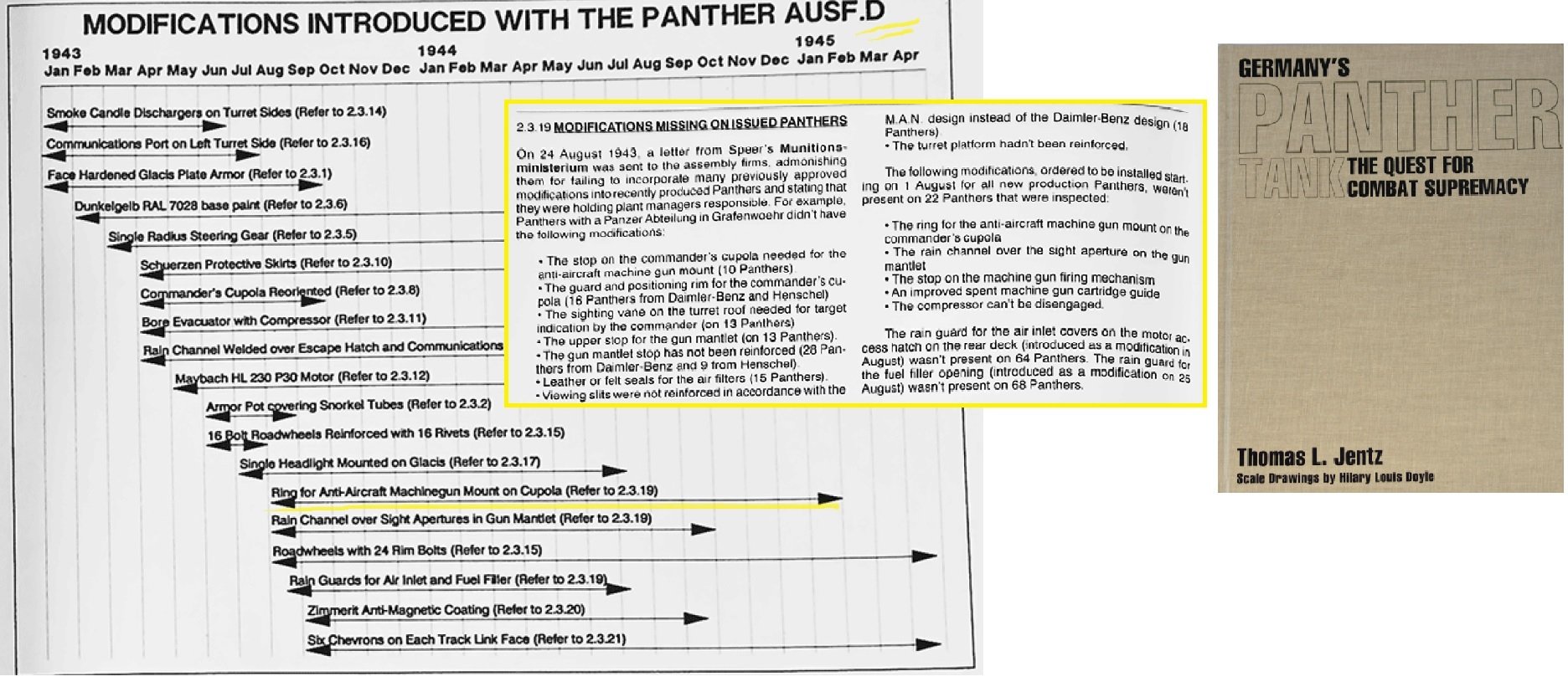 Lofte Posted August 19, 2020 Posted August 19, 2020 If we talk about Panthers it was planned to equip Panther "D" with AA MG Mount from 1 Aug 1943. But these plans were failed by tank plants. So these mounts appeared in combat units much more later, I suppose in late 1943-mid 1944. 2 1