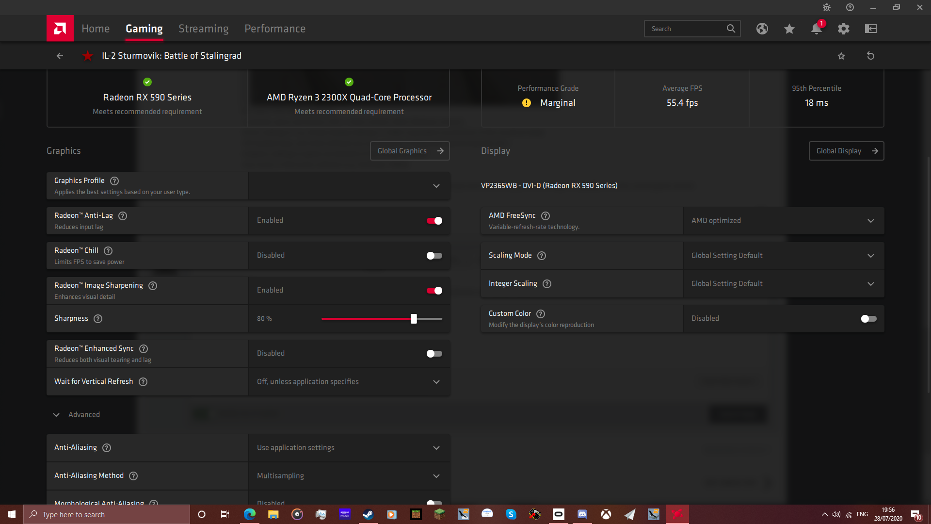 Lisbidahorse Posted July 28, 2020 Author Posted July 28, 2020 (edited) Right so info for you: PC Specs is a R3 2300X (I know this is a bottleneck I am looking to upgrade), 16GB 3200mhz ram, and an RX590. Below is the graphics settings profile for IL2 And the global settings for all games: I am running a Rift S using Steamvr And graphics settings in game are I do have the resolution down when playing in VR And I do not have any third party programs Graphics drivers are up to date as well Edited July 28, 2020 by lisbidahorse