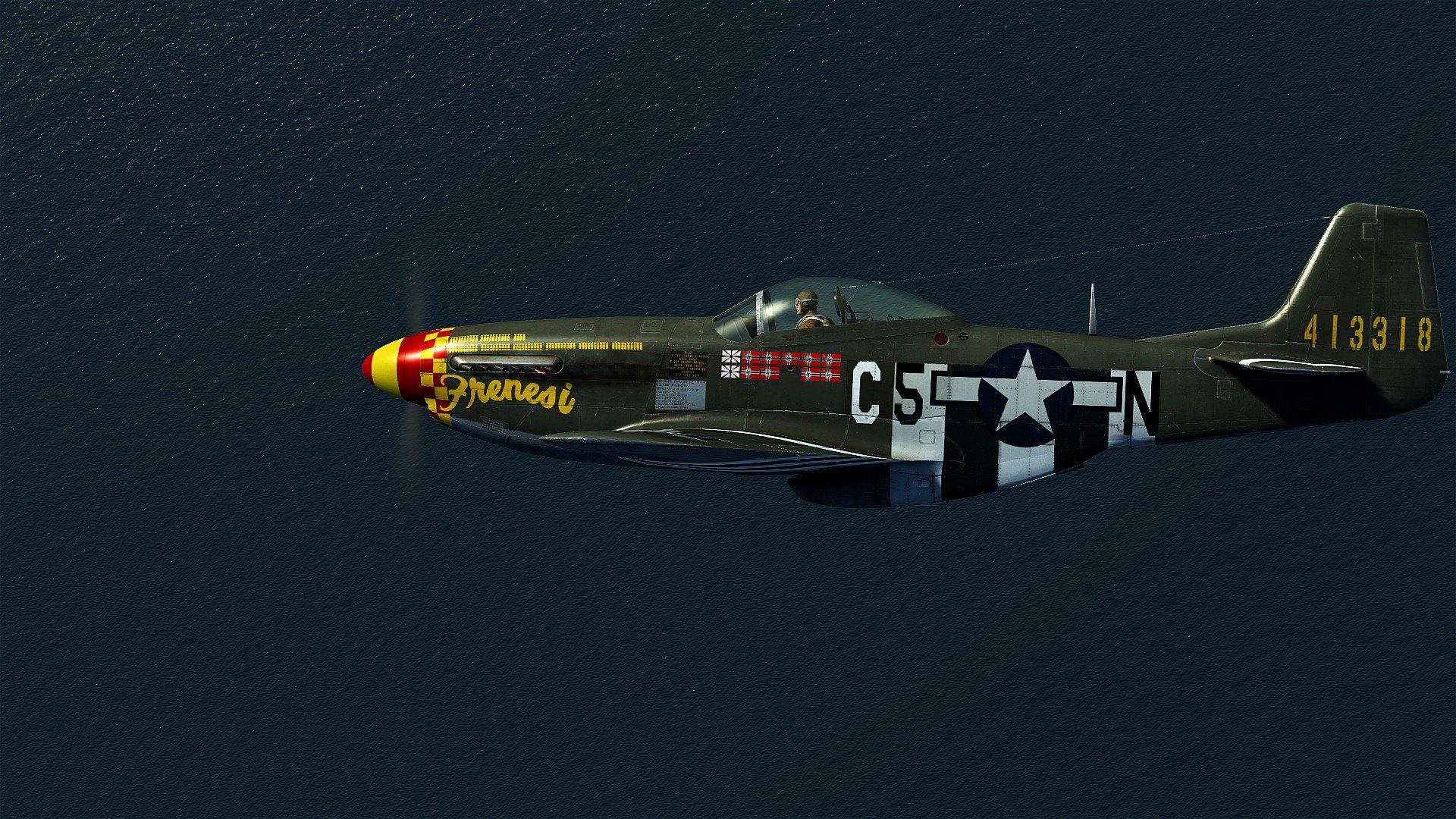 Tempus Posted August 23, 2020 Author Posted August 23, 2020 (edited) Another VIP-51D: "Frenesi" flown by Lt.Col. Thomas L. Hayes, Deputy Commander of the 357th.FG, March 1944. Her name was from a famous song in 40's : "Free & Easy", but if you take it from the spanish word "frenesí" could be translate to "frenzy", "Fury" and also matchs. Enjoy it and go frantic in it !!! Edited September 28, 2020 by Tatata_Time No freedom expression NO CONTENT SHARING 3 2